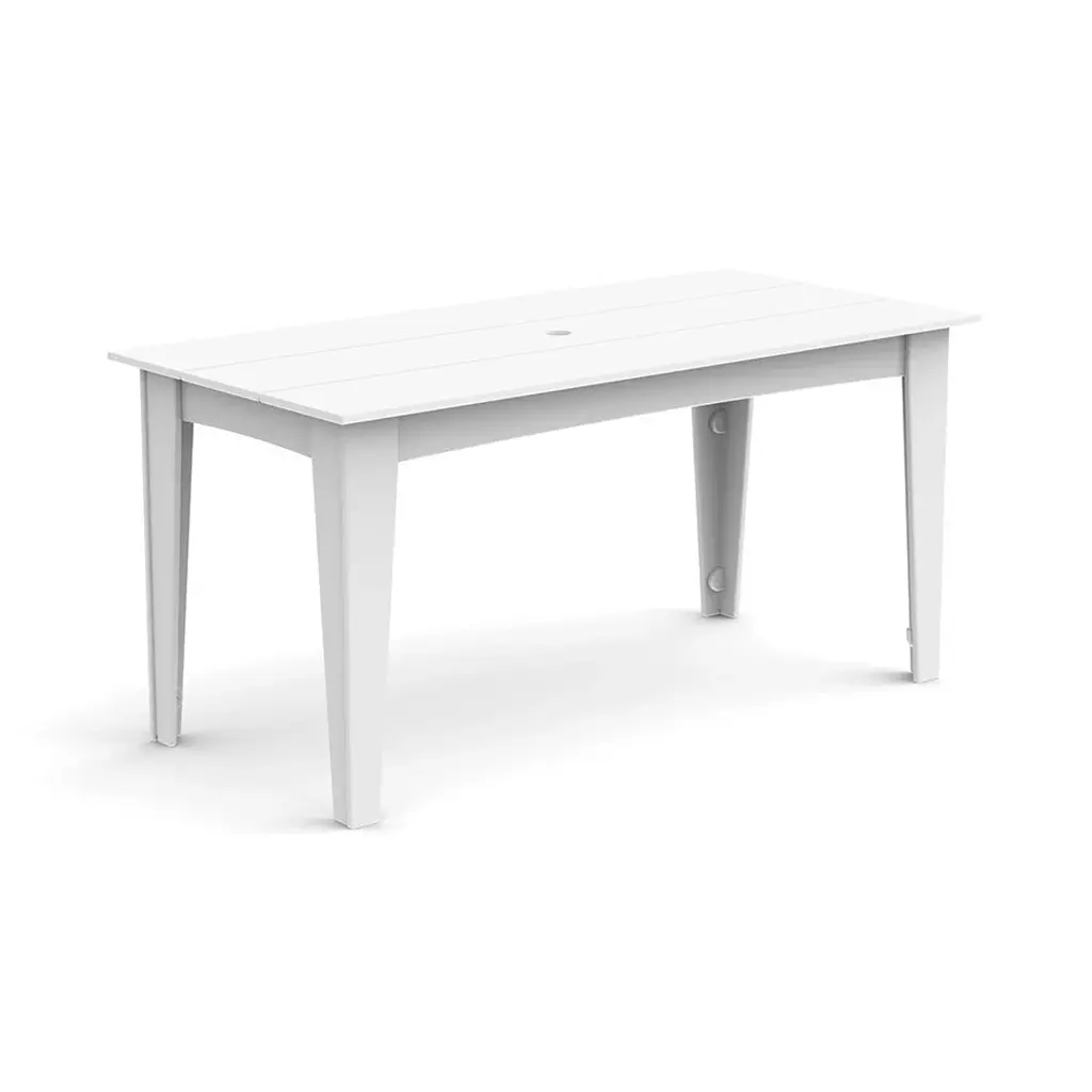 The perfect modern outdoor dining table for any setting, the Alfresco Dining Table from Loll Designs is a durable and colorful table ready to stand up to the outdoors. Crafted from recycled plastic, this outdoor dining table cleans up easily and requires virtually no maintenance. Treated with UV-resistant additives to ensure the color remains for years to come, this dining table boasts a classic slatted design ready to suit any patio or back deck dining area.Highlights UV INFORMATION: