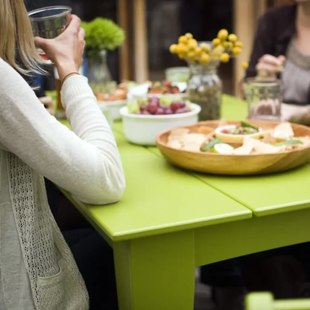 The hip, cool sister to the old wood picnic table, the Loll Designs Alfresco Outdoor Dining Table is made to stylishly endure the elements while taking stress off the environment at the same time thanks to its recycled and recyclable composition. Choose from several sizes to best fit your party.
