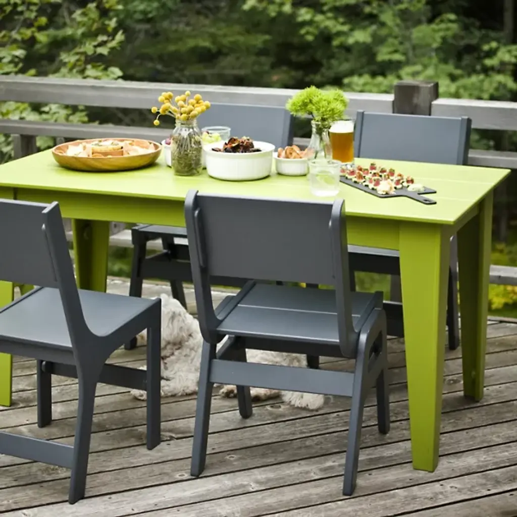 The hip, cool sister to the old wood picnic table, the Loll Designs Alfresco Outdoor Dining Table is made to stylishly endure the elements while taking stress off the environment at the same time thanks to its recycled and recyclable composition. Choose from several sizes to best fit your party.