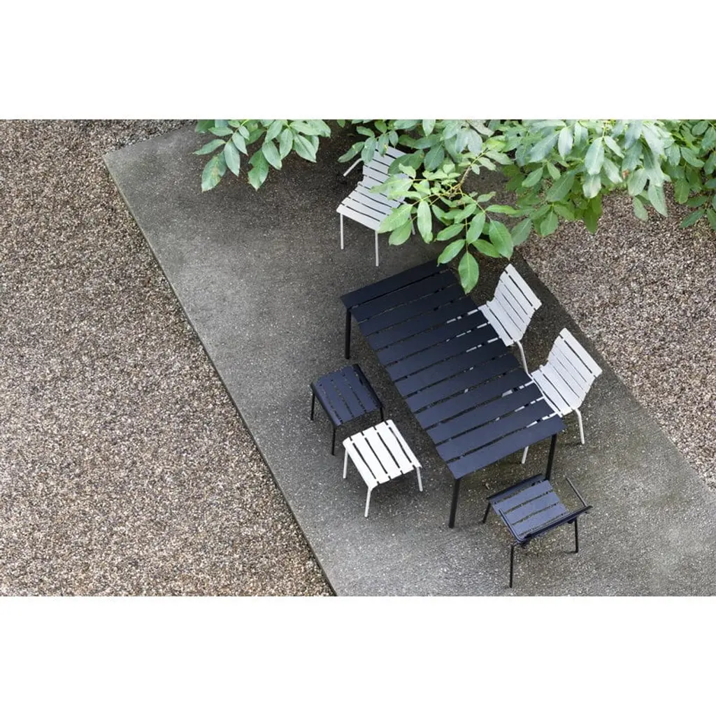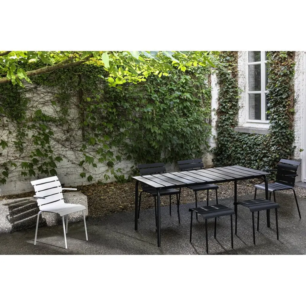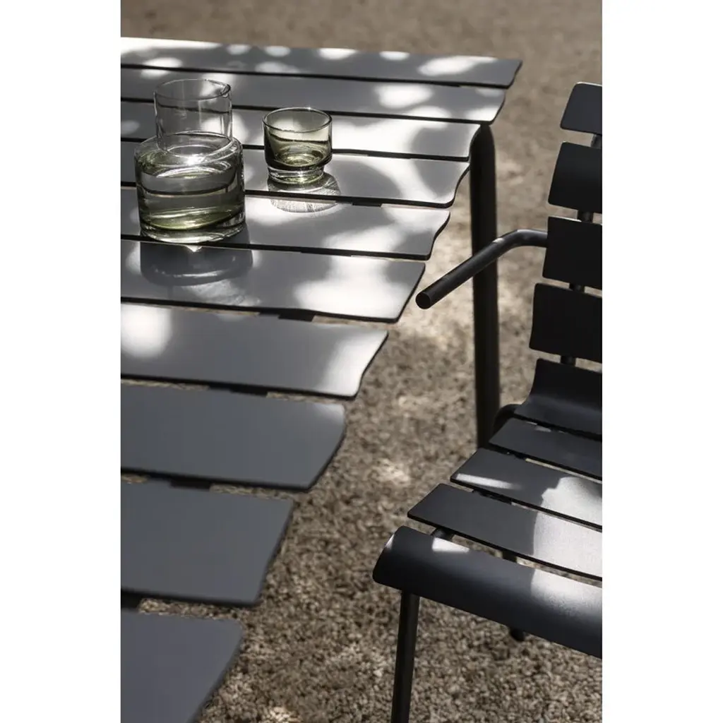The seemingly simple look of the Aligned dining table by valerie objects takes you by surprise: the asymmetrical slats made of tough aluminum give the understated garden table a whole new kind of personality. A true Maarten Baas design to the core, the imaginative and playful Aligned table has been meticulously created based on the Dutch designer's pencil drawing. The beautiful and durable outdoor dining table is a delightful addition to both the garden and the terrace of the summer house – and will surely bring a smile to your face one year after another.