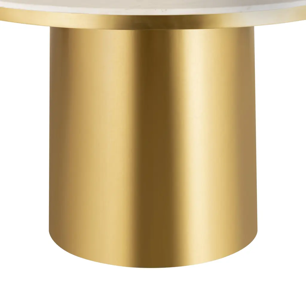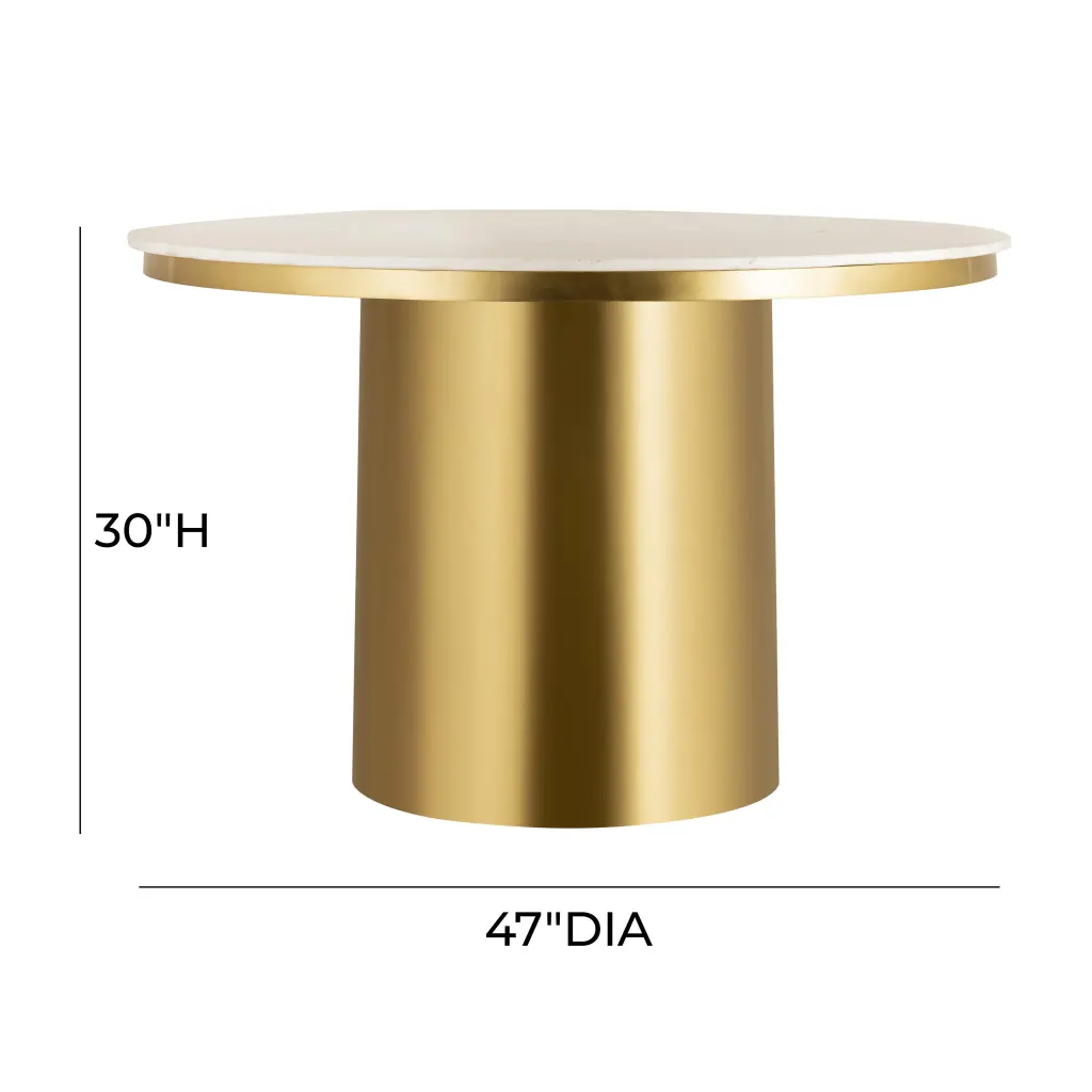 White marble and brushed gold perfectly combine to create the glam and ritzy Alisin table. Its tubular base adds a modern allure and its tabletop allows comfortable seating for up to four.