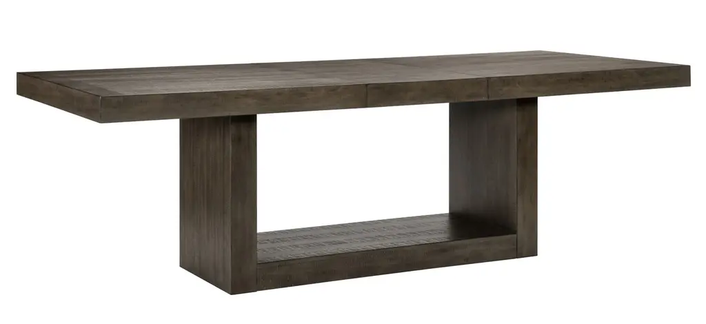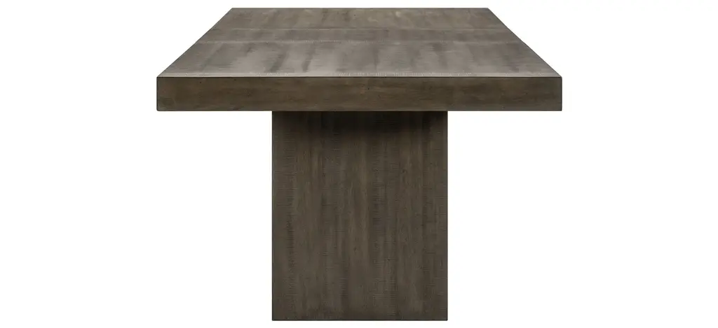 In a break from the minimalistic styling of contemporary design, the Alton Dining Table provides a substantial platform for your dining pleasure. The acacia veneer of the collection is treated to a brown finish, its hue a neutral addition to your space. An open box-frame rectangular pedestal supports the tabletop.