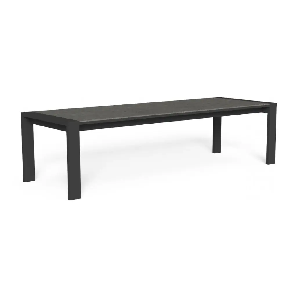 The rectangular dining table is the largest of the Argo Alu collection. The solid aluminum structure supports a large stoneware top. The perfect combination with the dining armchairs of the same line makes this table the ideal piece of furniture to decorate many outdoor spaces.