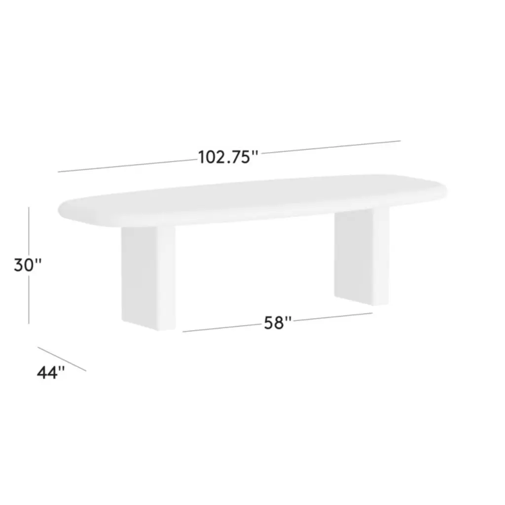 Resin and concrete dining table by Caleb Zipperer showcases a modern mix of organic and industrial details. Softened by a smooth white finish and rounded corners, the top is rendered in resin for a commanding presence with a sense of movement. The high-gloss finish highlights distinctive impressions on the surface, heightening its organic appeal. CB2 exclusive.