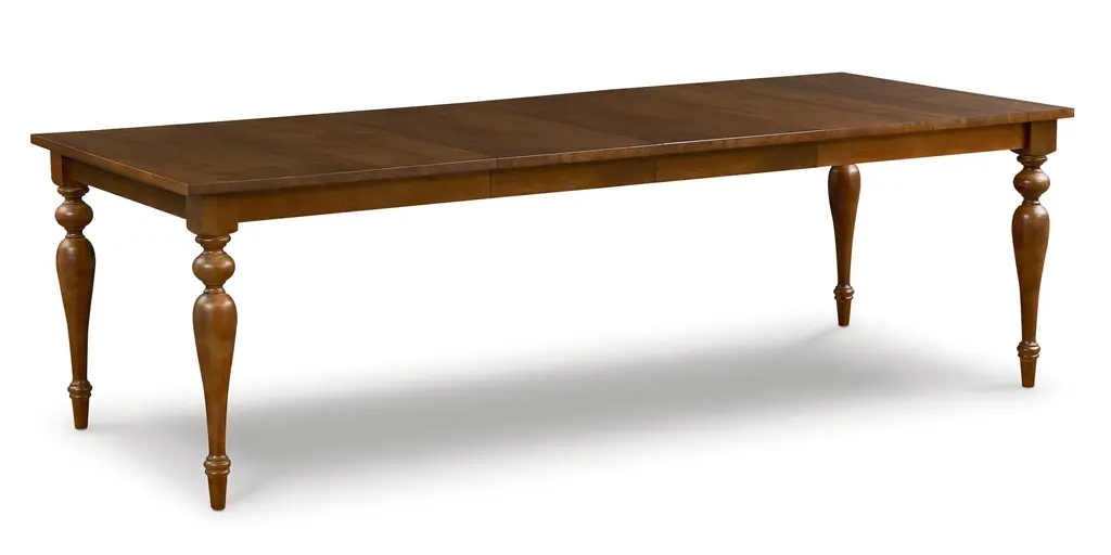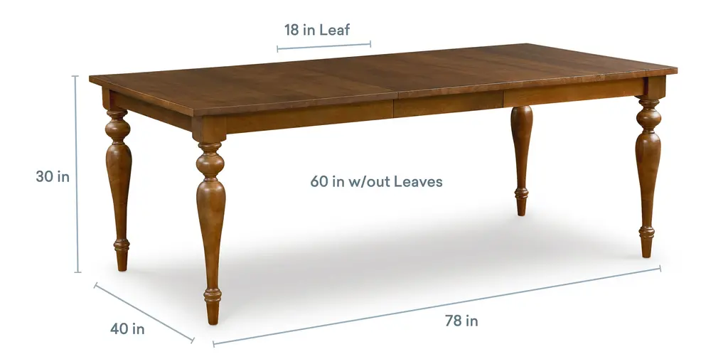 Invite the family over anytime with this classically styled Benchmade leaf table. Each table comes with a removable 18 leaf made with your table for a perfect fit. Featuring a tasteful farmhouse style leg, this piece is made for you in any of our Benchmade Maple finish colors, specifically created to show off the fine natural grain of the Maple. Even more company? Also available with a second leaf.