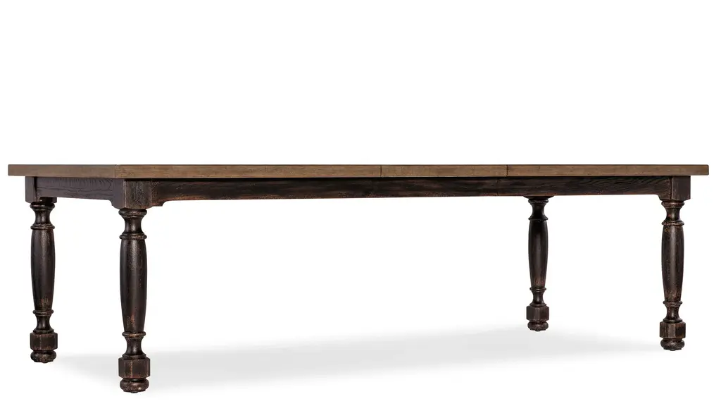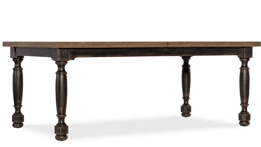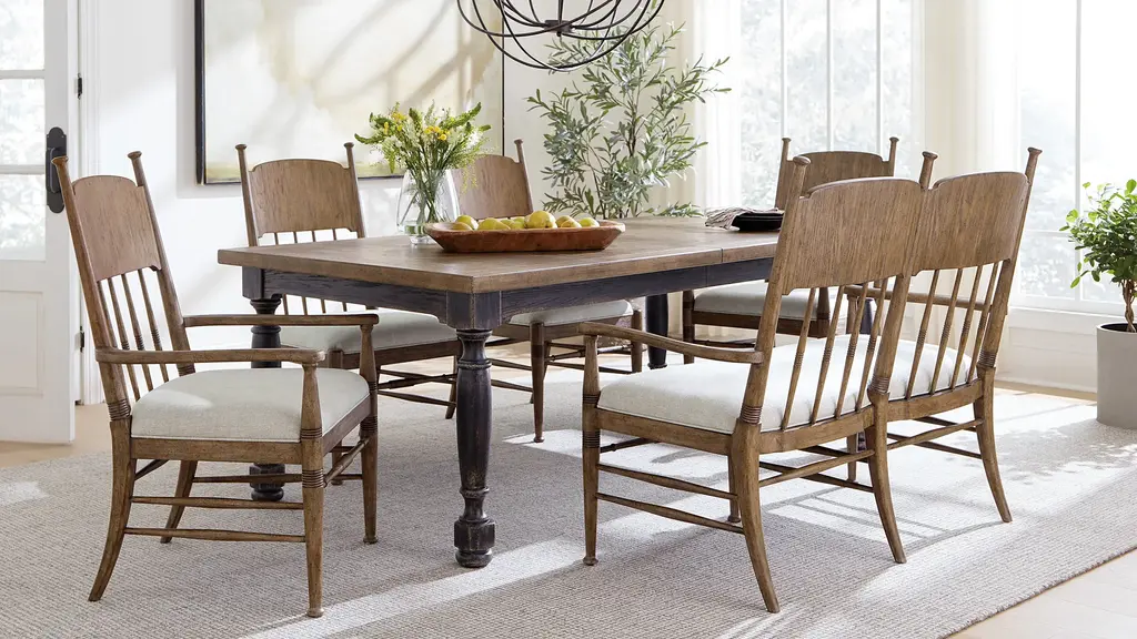 Americana Dining Table harkens back to a simpler, more genteel time. Featuring a Solid-Wood Edge top, it has chunky turned legs. What's more, this table can be a real crowd-pleaser. With the 22-inch leaf in place, it extends to 102 inches long, accommodating up to 4 coordinating benches and two armchairs or up to 8 coordinating arm or side chairs. Without the leaf, it accommodates up to 6 coordinating arm or side chairs and up to two coordinating benches and two armchairs.