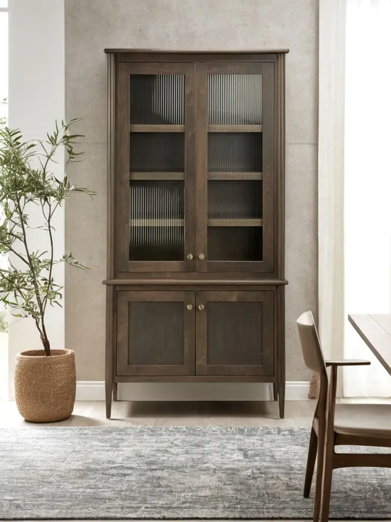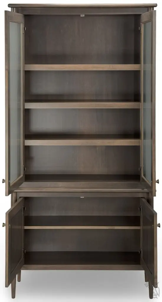 Amish Crafted Solid Maple Wood Tate Bookcase with Glass Doors in Rawhide Finish. This item is stocked in Rawhide finish on maple wood or order in your choice of wood, size and color. This two piece bookcase can be used in a home office, living room, hallway entry table or dining room. This storage cabinet features three adjustable shelves behind upper doors. There is one adjustable shelf behind lower wood doors. Doors are mounted on soft-close hinges. Shown with optional reeded glass doors on upper cabinet. The Tate Dining Collection pairs soft, rounded legs with a beautifully designed floating tabletop for a look that's light, modern, and effortlessly refined. This subtle interplay of curves and clean lines creates a sense of airiness and balance, while showcasing the warmth and character of solid wood. With its sculptural details and serene presence, Tate brings a fresh, contemporary elegance to everyday dining. Build options (contact showroom for pricing and options): Choose from 6 hardwoods: Red Oak, Maple, Cherry (Rustic & Premium), Hickory (Rustic & Premium), White Oak (Quartersawn or Planksawn), Walnut Choose a high-performance finish color or custom paint Choose glass or wood doors Custom sizes and modifications available Key Features: Premium Amish Craftsmanship: Meticulously handmade using sustainable, high-quality hardwoods, ensuring lasting strength and beauty. Lifetime Warranty: Full repair or replacement if your furniture fails due to problems in workmanship or material. See catalog for full details. Customizable Finishes: Available in a variety of finish colors on every wood including custom paint options. Your Furniture Your Way: Choose the style and wood and all elements that go into making your selection unique. Your custom built furniture will be tracked with your name from start to finish. Eco-Friendly Materials: Built using environmentally conscious methods and sustainable materials, making it an eco-friendly choice for your home. High Performance Finish: All products feature Polyurethane finish, This finish is formaldehyde free from day 1 and is an even tougher finish than the varnish. Standard Features: Blum SmartSlides, soft-close hinges, high quality solid wood drawer boxes, one piece drawer fronts, dado, dowel or mortise & tenon joinery, sealed end-grain are just a few of standard construction techniques. Simply Amish product comes with a lifetime guarantee, and all pieces are built with the highest quality woods, finishes, and hardware. Simply Amish uses a non-yellowing, polyurethane, which is one of the best finishes in the industry. Polyurethane is a durable, protective finish that enhances the beauty of wood while shielding it from scratches, moisture, and everyday wear. Its clear, smooth coating brings out the grain's natural richness and provides long-lasting resistance to stains caused by most household liquids making it an ideal choice for furniture that's built to be both beautiful and lived in. This finish is formaldehyde-free from day one and is an even tougher finish than the varnish. No particle board. Matching items sold separately. Made in the USA. Fully assembled. Manufacturer: Simply Amish.