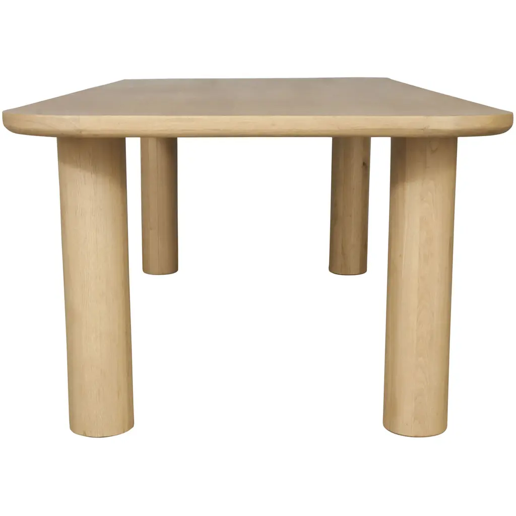Crafted from FSC-certified oak, the Anders dining table's expansive surface comfortably seats eight, while a half-bullnose edge softens the minimalist silhouette. Four sleek column legs provide a stable foundation, echoing the table's commitment to simplicity. The natural finish celebrates oak's inherent beauty, with unique grain patterns ensuring each piece tells its own story.