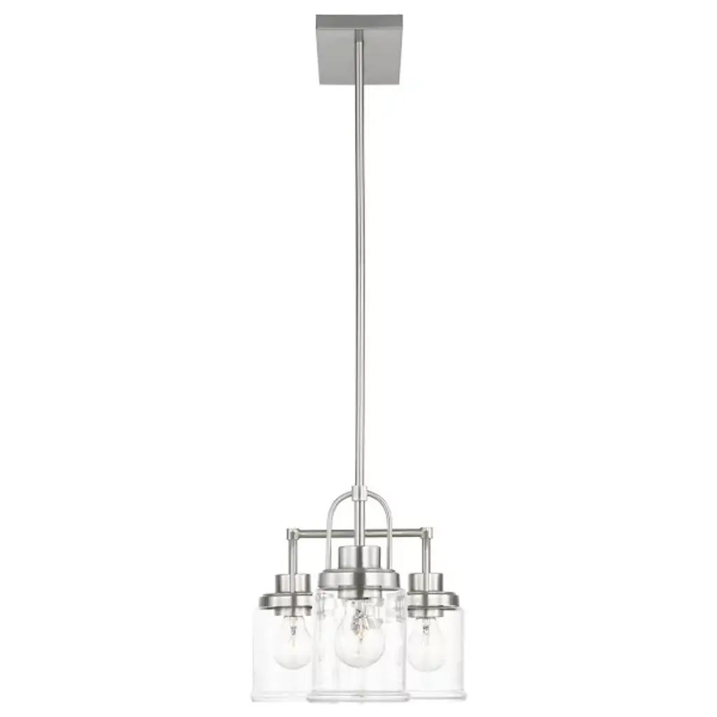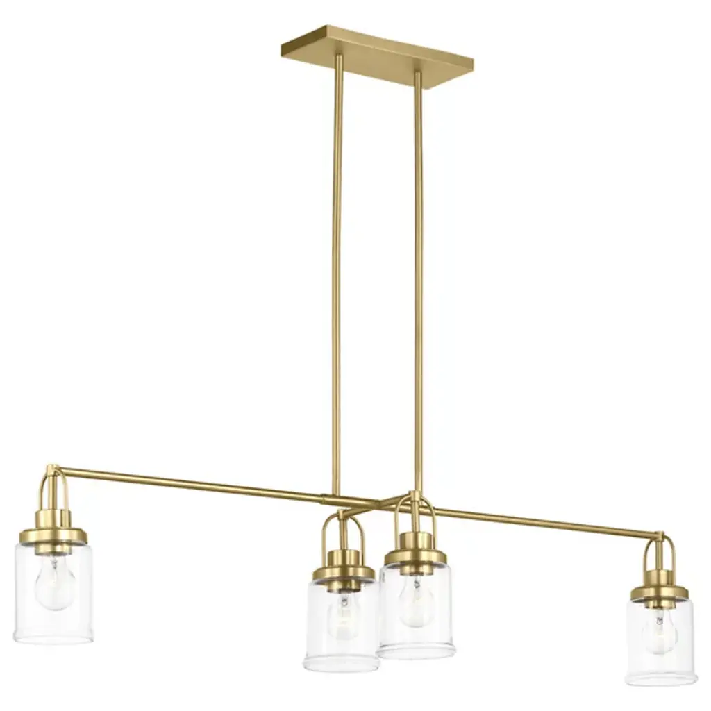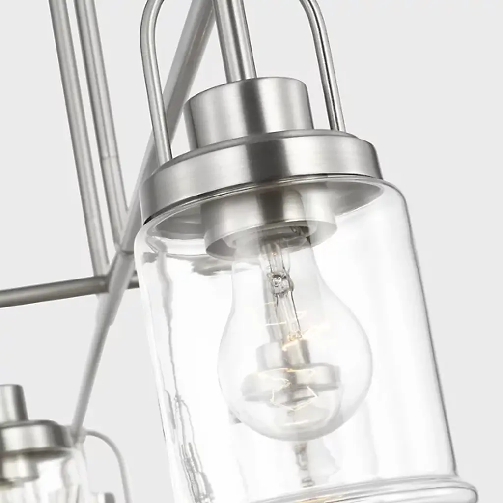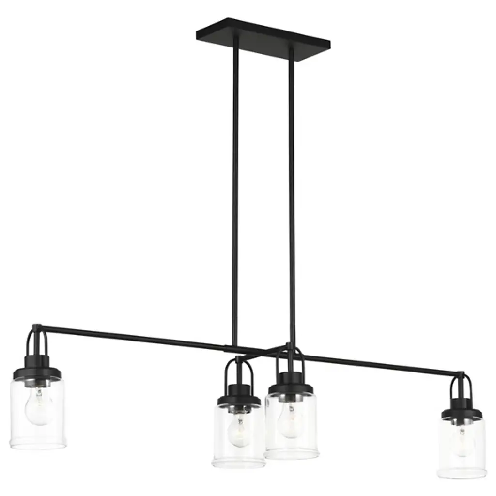 The Anders Linear Suspension from Visual Comfort Studio adapts the series' industrial-inspired aesthetic to a horizontal format ideal for longer spaces. This linear fixture features clear glass shades that maintain openness while directing light downward onto surfaces below. Its dimmable functionality offers lighting flexibility to accommodate different moods and activities. All ceiling mounting hardware comes included for straightforward installation over kitchen islands, dining tables, or in hallways where the suspension's linear presence helps define and illuminate the space. Its transitional design language works well in diverse interior styles, from contemporary to more traditional settings.