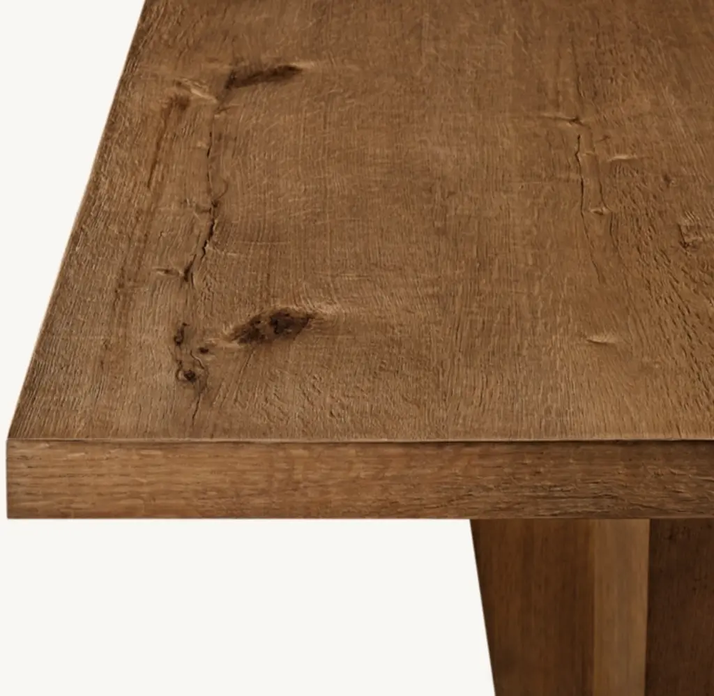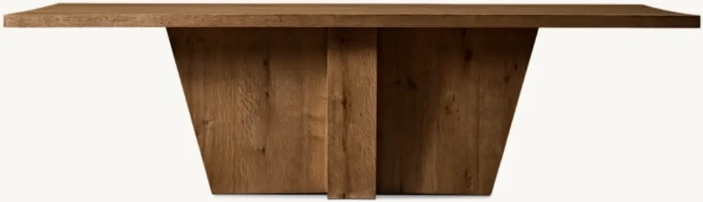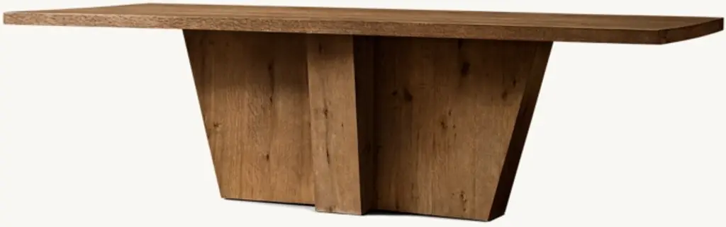 Our collection by California designer Ron Mann evokes the bold architecture of 1970s postmodernism. Handcrafted of wire-brushed American white oak, intersecting wood planks form the table's dramatically angular base, bringing a spare and sculptural sensibility.SHOP THE ENTIRE COLLECTION
