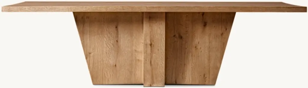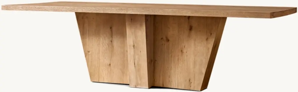 Our collection by California designer Ron Mann evokes the bold architecture of 1970s postmodernism. Handcrafted of wire-brushed American white oak, intersecting wood planks form the table's dramatically angular base, bringing a spare and sculptural sensibility.SHOP THE ENTIRE COLLECTION