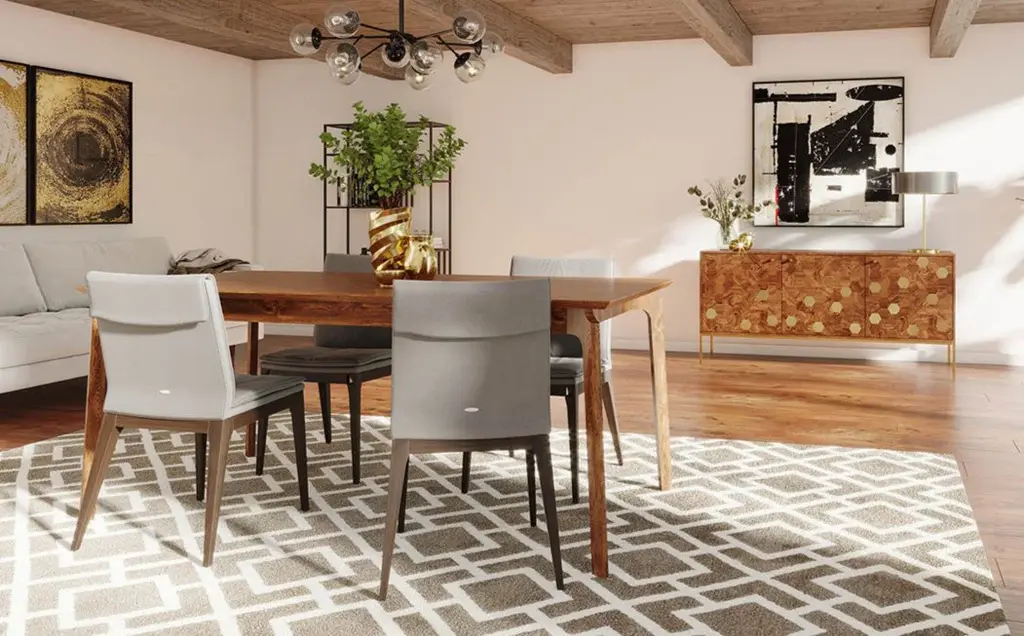The Andrena Dining Table is an instant classic for your home. The black or brown finish of the solid mango wood gives the table a clean, uniform look and there are no metalwork or gold accents to take away from the natural appeal of the wood. It comfortably seats up to 6 people and is thoughtfully constructed for maximum seating space.