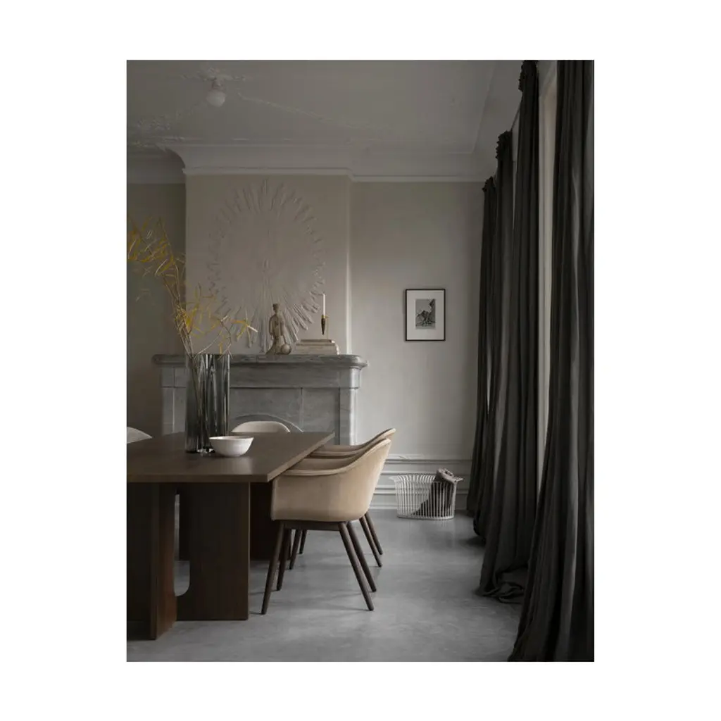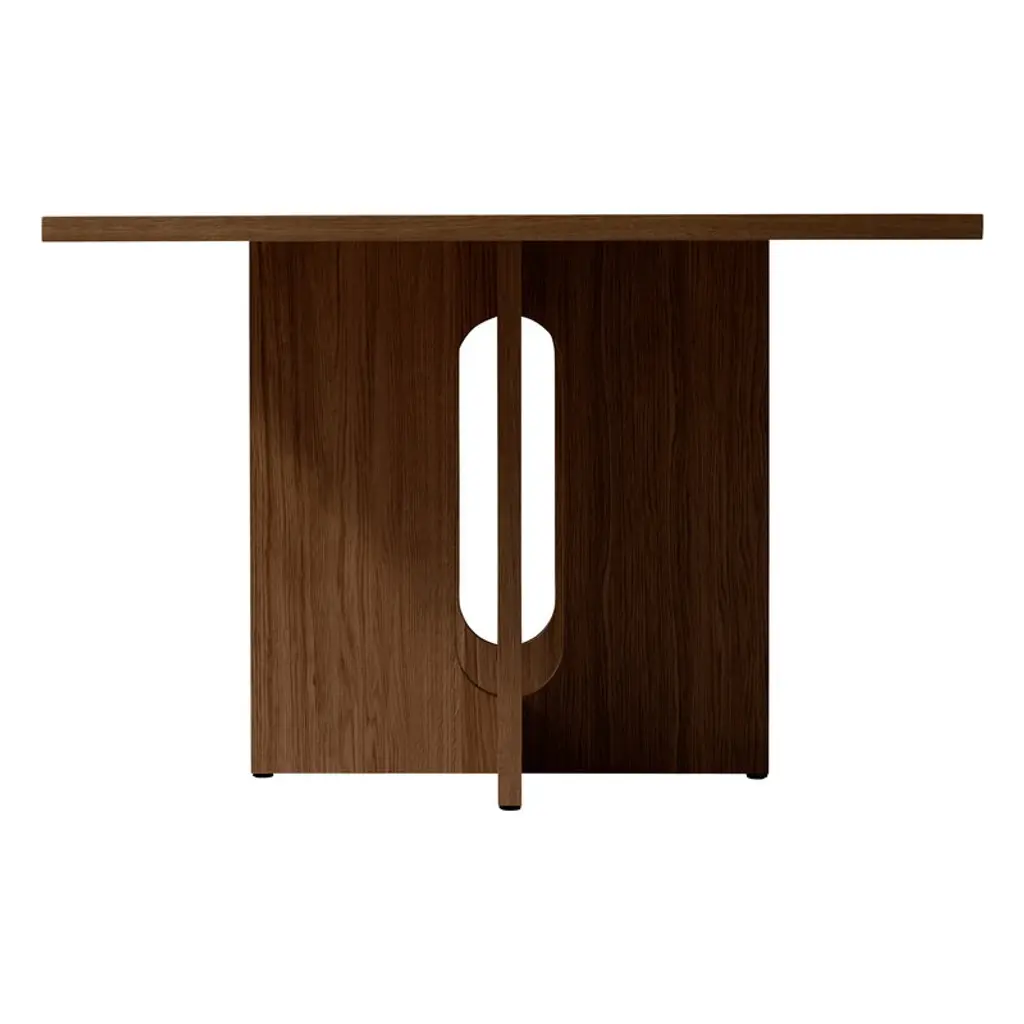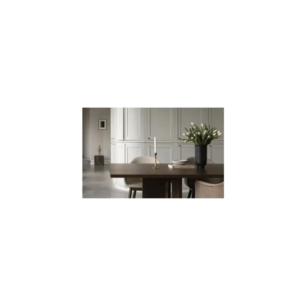 Audo Copenhagen’s Androgyne dining table is a charming combination of contrasting features. Crafted from dark-stained oak veneer, the table plays with feminine and masculine elements, soft cuts and sharp edges, as well as simple and bold silhouettes. Designed by Danielle Siggerud, the harmonious, stable look of the Androgyne table is a focal point of the dining area, equally pleasing to use and to gaze upon.