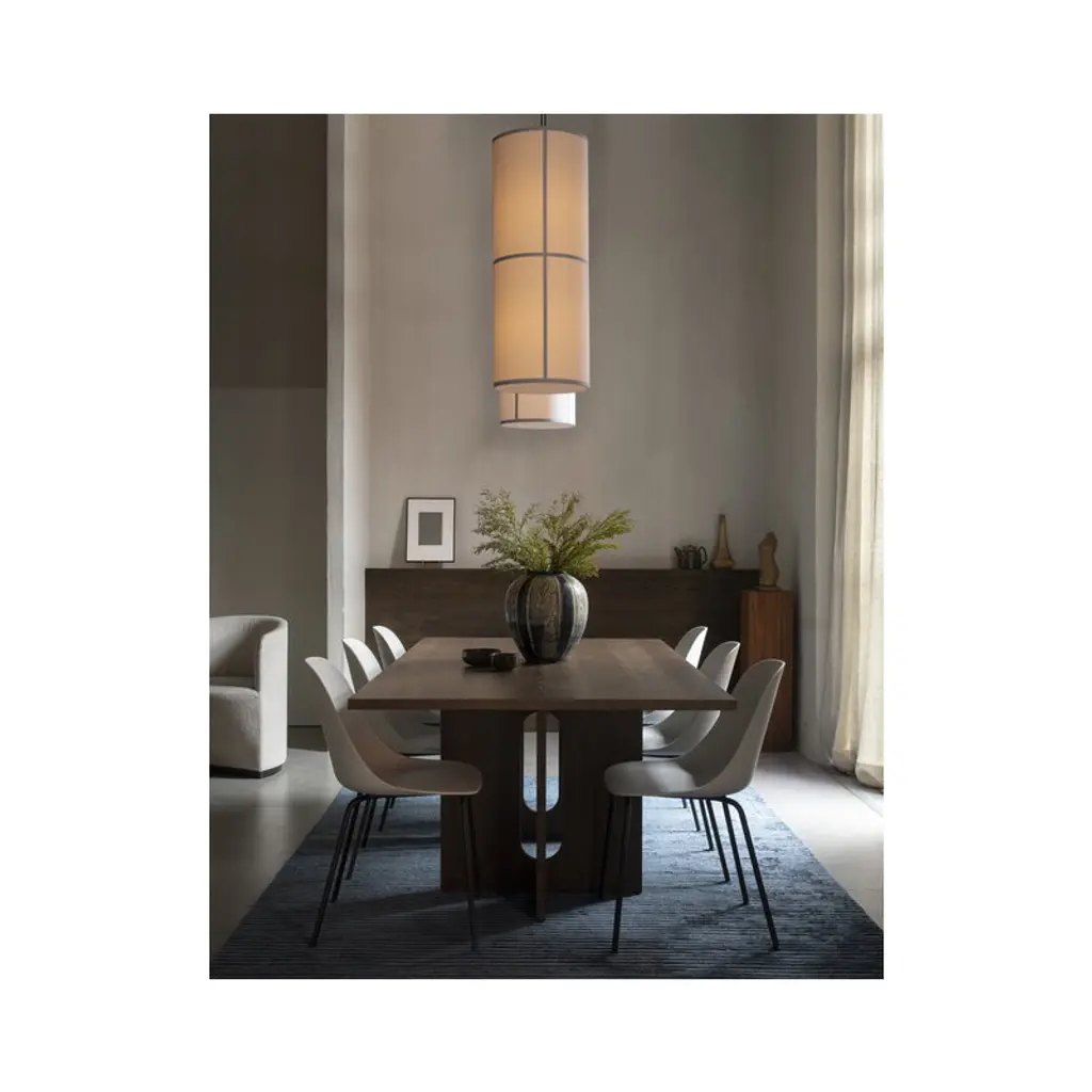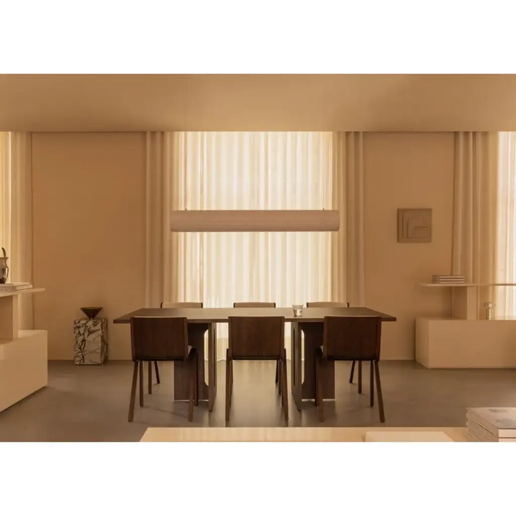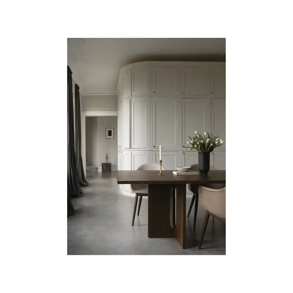 Audo Copenhagen’s Androgyne dining table is a charming combination of contrasting features. Crafted from dark-stained oak veneer, the table plays with feminine and masculine elements, soft cuts and sharp edges, as well as simple and bold silhouettes. Designed by Danielle Siggerud, the harmonious, stable look of the Androgyne table is a focal point of the dining area, equally pleasing to use and to gaze upon.
