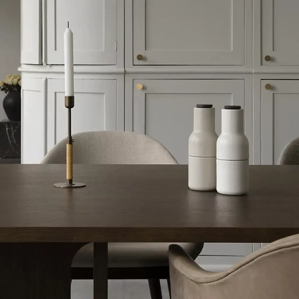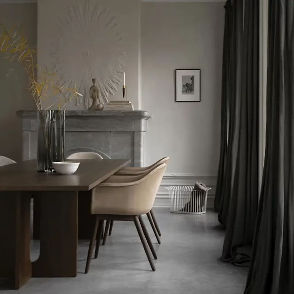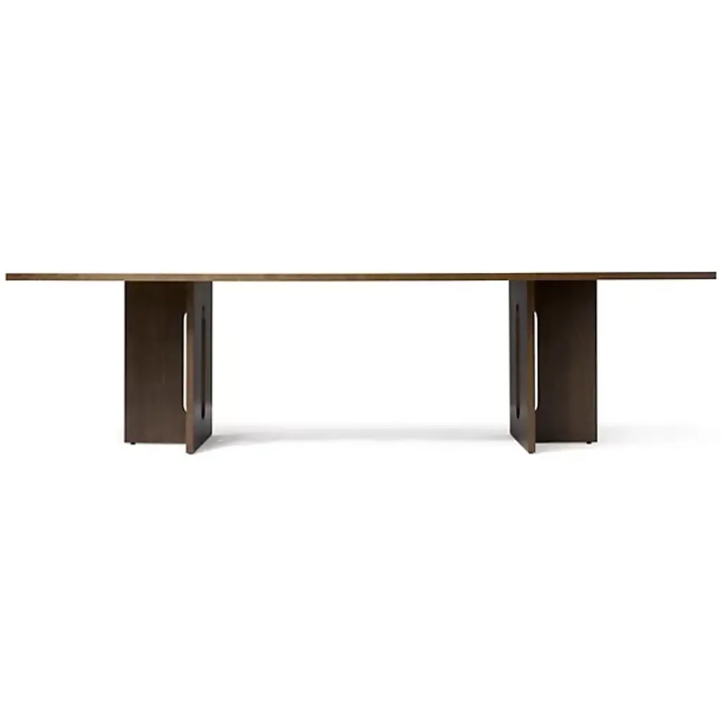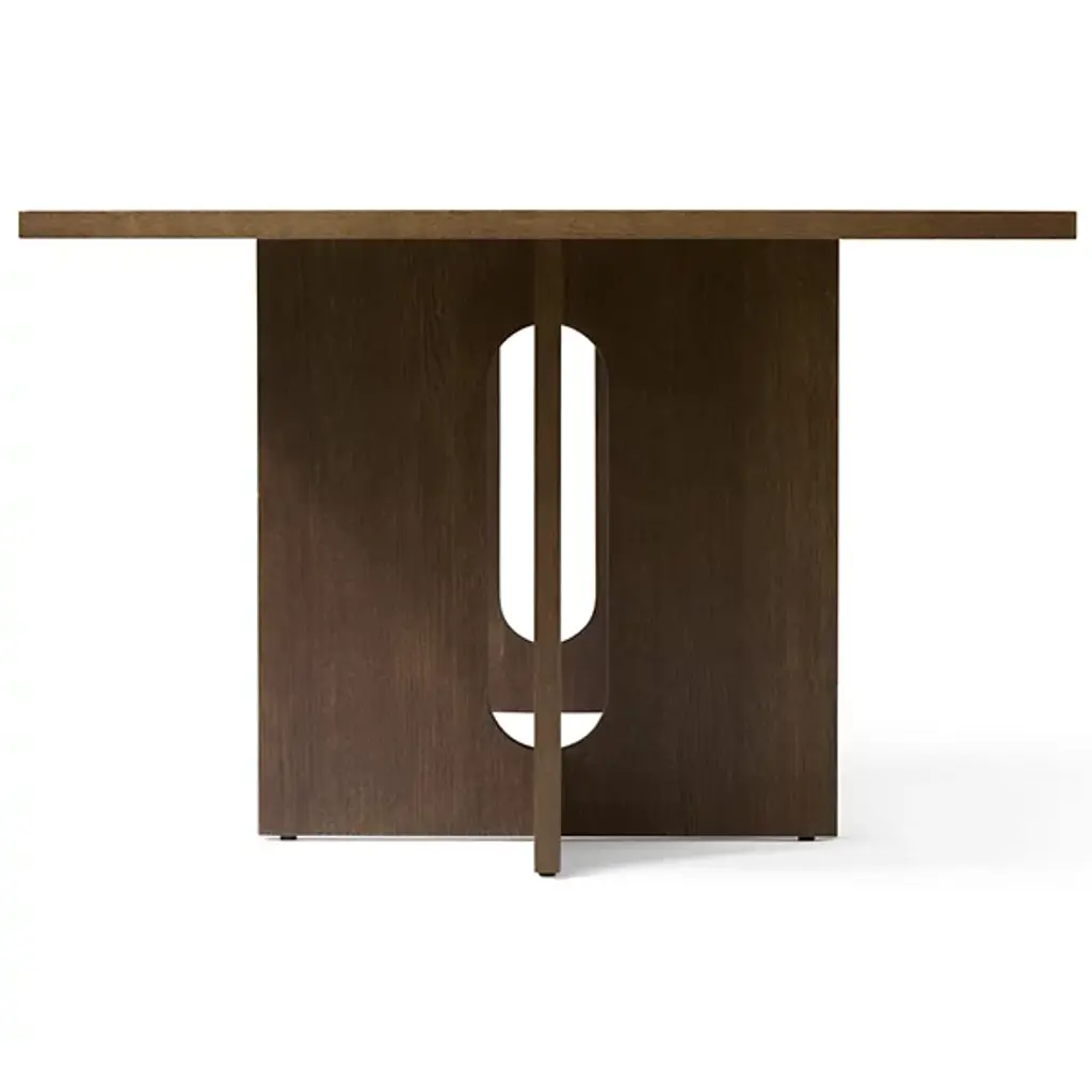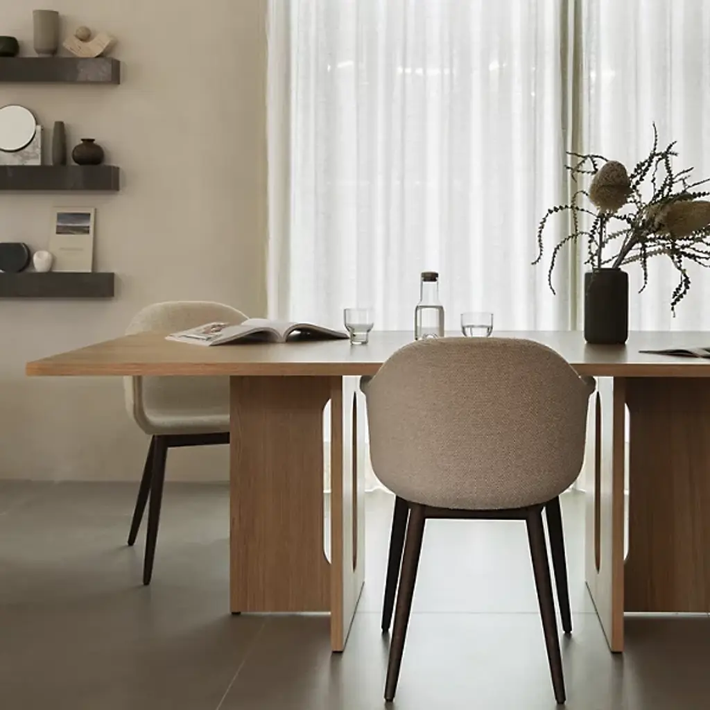 Masculine and feminine, balanced for enduring beauty. Gather around or simply admire the balanced design of the Androgyne Rectangular Dining Table from Audo Copenhagen, formerly known as Menu. For designer Danielle Siggerud, timelessness and tenderness is key to the design. No materials show these qualities better than MDF with oak veneer. Radiating with a warm hue, the table’s wood construction gets the eyes moving with a beautiful wood grain texture. The artful texture complements the architectural, masculine lines of the geometric silhouette. The eyes relax as soft curves carve out the center of the base, offering plenty of legroom for holding dinner or a meeting over the clean geometric tabletop. A powder-coated steel fitting adds durability. At the end of the day, the tabletop cleans up spills and debris with ease, thanks to a protective finish.