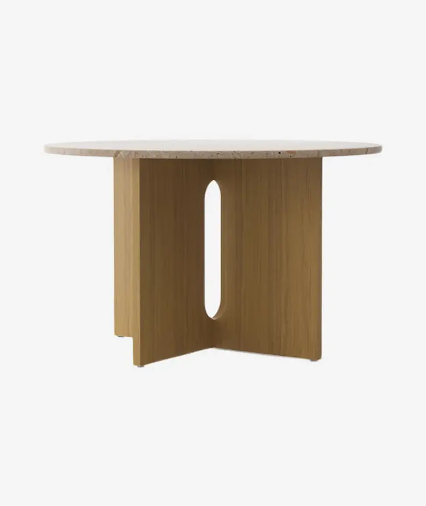 Audo Copenhagen’s Androgyne Collection is distinguished by its playful, yet elegant silhouette and considered combination of natural materials. The invention of the Copenhagen-based Norwegian architect and designer Danielle Siggerud, its blend of the masculine and feminine, true androgyny, is what lends the collection its name. Like a magnificent monument, the new Androgyne Dining Table pairs oak and stone to striking effect. The bold and confident take on a dining table amplifies the silhouette of the collection’s popular side table to grander proportions thanks to an elegant oak base, available in natural or dark stained, and a table top in corresponding wood or kunis breccia, an artistic blend of stones in warm tones that create subtle texture and add a new dimension to the design. A table not for the faint of heart, it makes a characterful accent in any space, from a domestic dining room to a modern restaurant or office gathering point, and serves multiple functions to bring a timeless quality to the design. "The Androgyne Collection has always been about honouring perfectly executed joinery and celebrating natural materials. The use of rich, warm oak makes it easy to pair the dining table with any interior style, and the wood will age gracefully over time. I envisage the table in a home space, as a natural gathering point that allows people to come together in different ways.” Danielle Siggerud