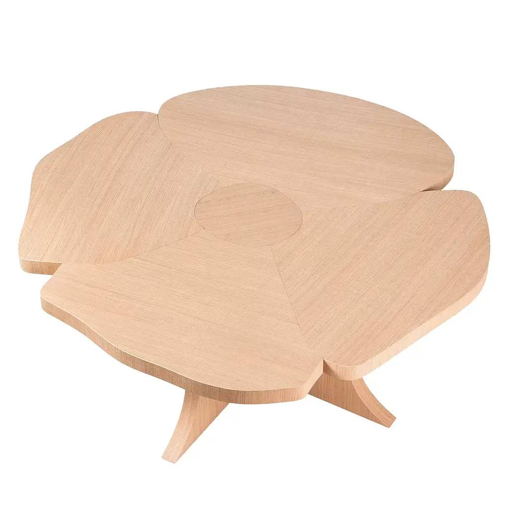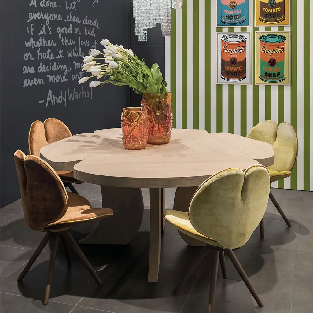 This exquisite dining table is part of the Andy collection and is characterized by delicate lines and a silhouette that evokes the magical world of flora, particularly in the striking top whose various elements combine together to create the shape of a flower. The four gently curved legs complement the top. The entire structure is made in oak wood and will be a striking addition to a modern or contemporary decor.