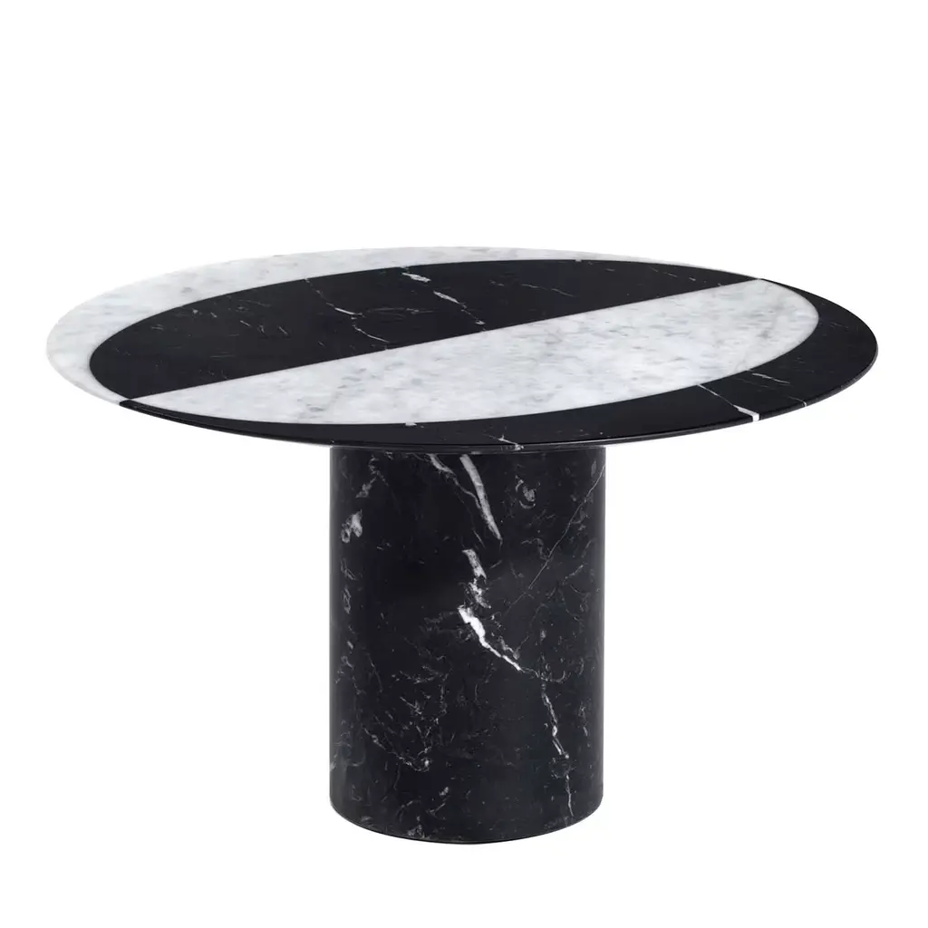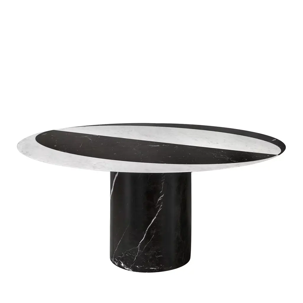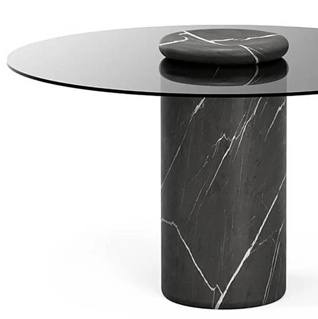 Table designed by Angelo Mangiarotti.Castore is a glass and marble table by Italian architect, sculptor and designer Angelo Mangiarotti. Designed in 1975 for Sorgente dei Mobili, the distinct design is now presented by Karakter, available as a 130cm dining table.The round glass top rests on a heavy marble pillar, and visually, Mangiarotti would have it seem that only a small marble bowl on top of the glass plate is holding it in place. The rounded corners on both the pillar and the bowl ads a sense of softness to the otherwise heavy aesthetics of the marble.The marble bowl can be removed and used as an individual element. However, keeping it as an integral part of the design, you can enjoy additional rounded corners, as the bowl reflects in the glass table top.Important information regarding images of products:Please note that some of the images show other colors and variations of the model, these images are only to present interior design proposals. The item that is selling is on the first image. Important information regarding color(s) of products:Actual colors may vary. This is due to the fact that every computer monitor, laptop, tablet and phone screen has a different capability to display colors and that everyone sees these colors differently. We try to edit our photos to show all of our products as life-like as possible, but please understand the actual color may vary slightly from your monitorAbout the designer:Italian architect, sculptor and designer Angelo Mangiarotti was born in Milan in 1921. Mangiarotti is quoted to have said, ”Happiness comes from honesty”. A quote that hints to his overall design approach rooted in the firm belief that architecture was a practical discipline and that industrial design was an expression of fine craftsmanship. He wanted each individual material to be respected and to be used in an appropriate and honest way. Beyond his many architectural feats, Mangiarotti’s body of work boasts a wide array of creative projects from sculpture, to products and lighting. Over the course of his career, he held lecturing positions at a number of distinguished design and architecture schools in Italy and abroad, he won numerous awards in both design and architecture, and his work has been included in exhibitions and collections at some of the world’s leading art and design institutions such as Centre Pompidou in Paris, Triennale Design Museum in Milan and Gallery MA in Tokyo.About the manufacturer:Karakter is a Danish design company founded on a spirit of exploration, courage and an uncompromising attitude to quality. Rooted in the Scandinavian design tradition with an international outlook, Karakter presents a portfolio of furniture, lighting and objects that is relevant, honest, expressive and sometimes playful. Aspiring to build an enduring legacy, they work with contemporary designers such as Aldo Bakker and PlueerSmitt and present works by the masters Bodil Kjær, Achille and Pier Giacomo Castiglioni, Paul McCobb, Joe Colombo and Angelo Mangiarotti. Each piece has a clear, undeniable expression, ensuring it pride of place in private homes and public spaces worldwide.
