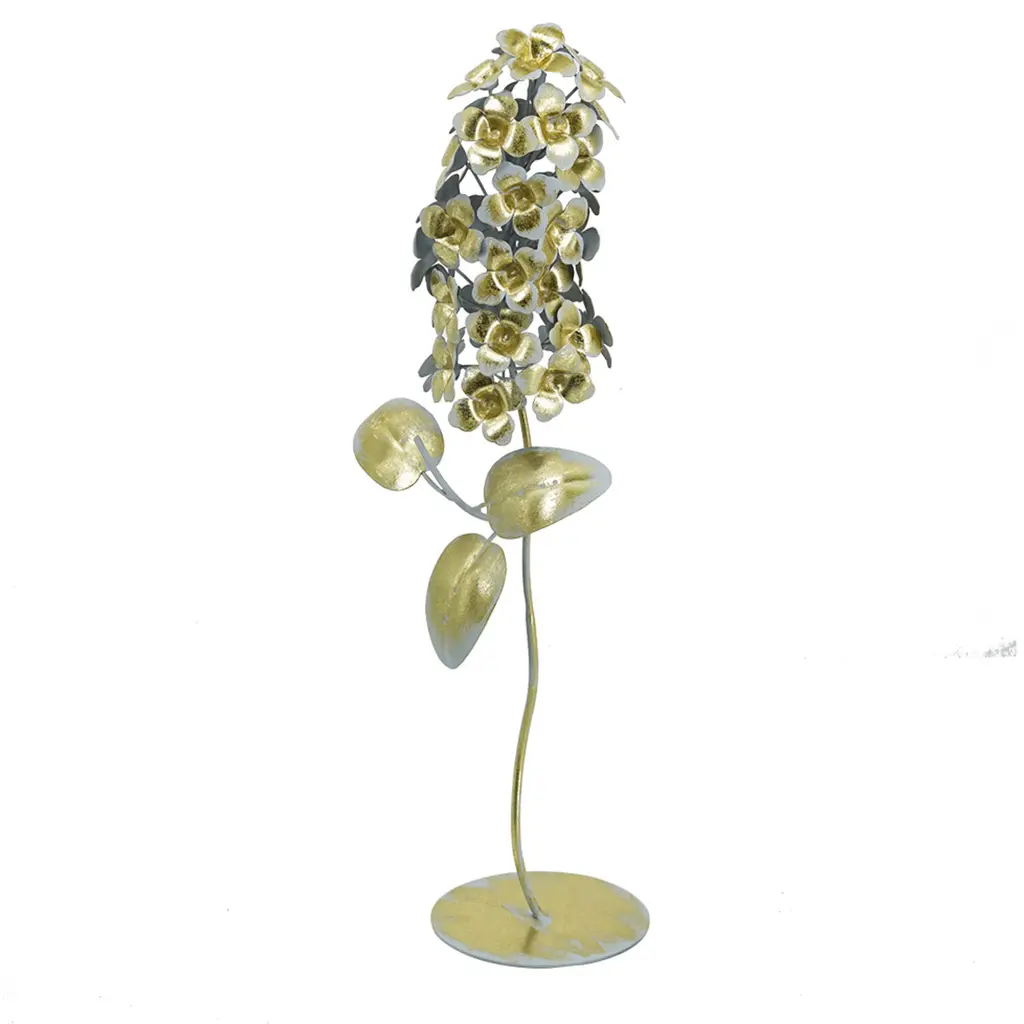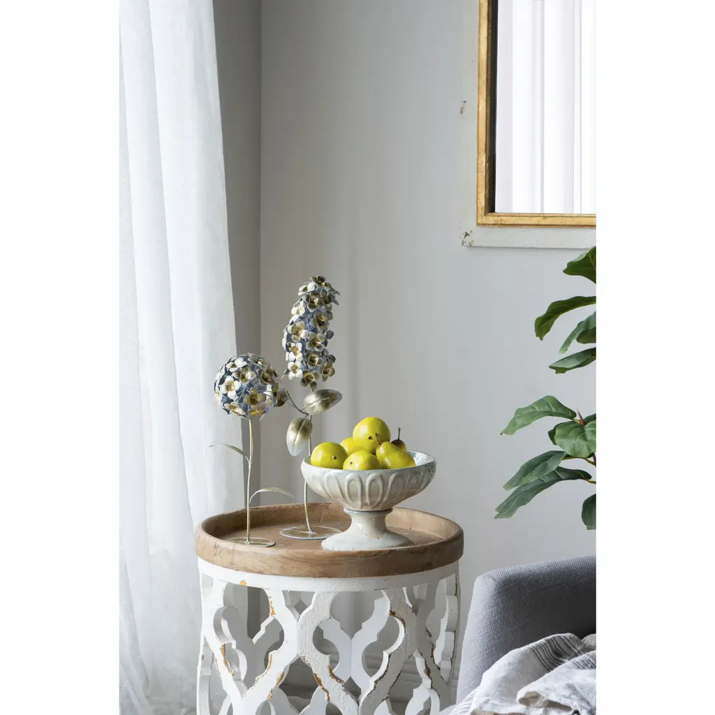 This unique statuary piece is a perfect addition to your living or dining space. Imagined in iron shaped like a beautiful hydrangea, it brings a touch of graceful transitional style to your indoor decor. Imagine charming your guests with its exquisite display next to a reading chair or on a dining table.