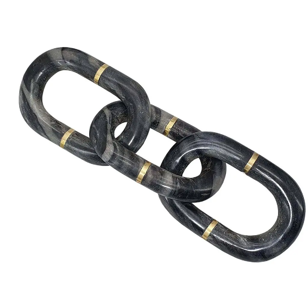 Boasting an organic gray color with occasional touches of brass, this three-link oval chain is crafted from solid marble to create a subtle yet eye-catching home accent piece. With a length of 14 and a 4 diameter, this chain offers versatility when it comes to placement. Whether it is displayed as a centerpiece on your dining room table, as part of an ensemble on your mantel.