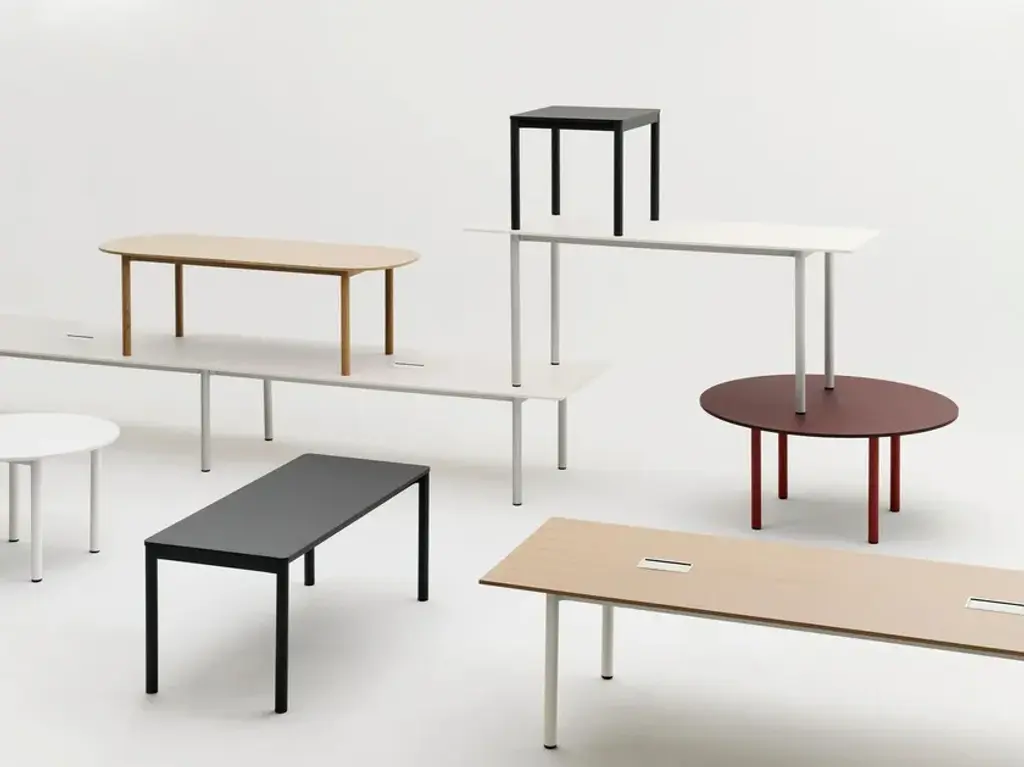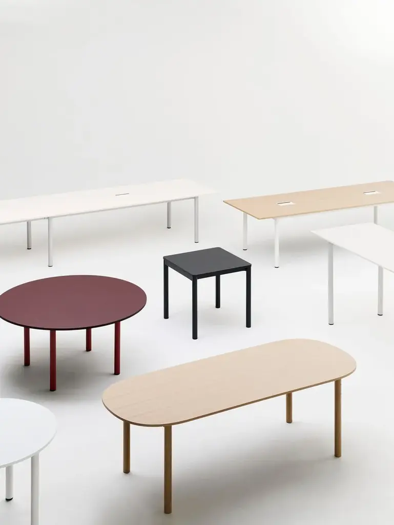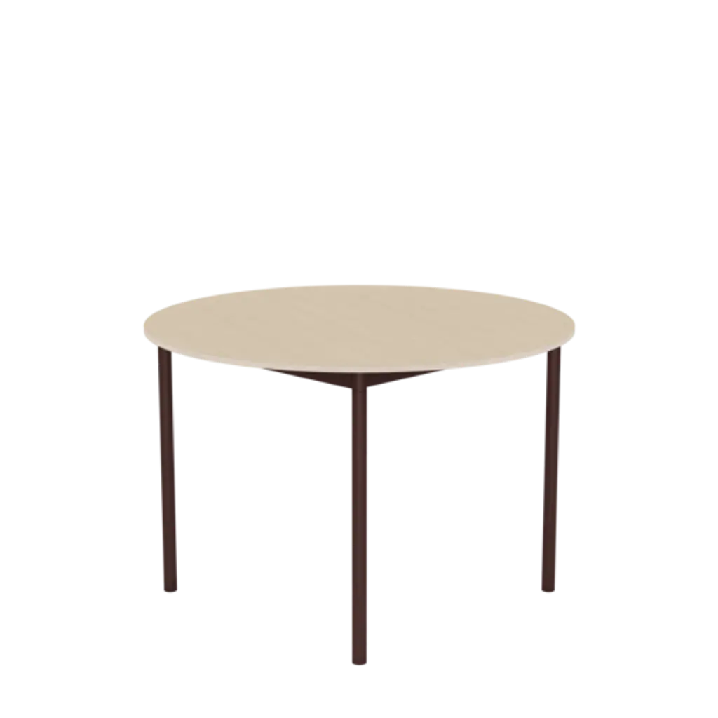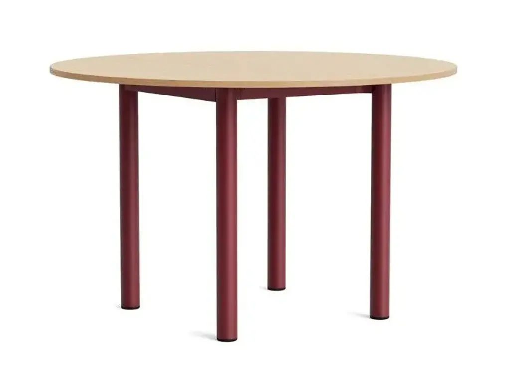Annex is a round table with legs and frame in powder-coated aluminum or solid oak.Designed for HAY by John Tree, Annex Table Round combines well-balanced proportions with architectural strength, creating a versatile table that seamlessly adapts to any space or situation. The circular design comprises a frame and tubular legs made from solid oak or aluminium, sourced from at least 75% recycled post-consumer scrap and extruded in Europe, combined with a variety of tabletop options, including Kvadrat’s Really Textile Tabletop™ made from 70% end-of-life textiles. The table’s considered use of materials and range of sizes make it a practical and inviting choice for most households – ideal for dining, working, and socialising.
