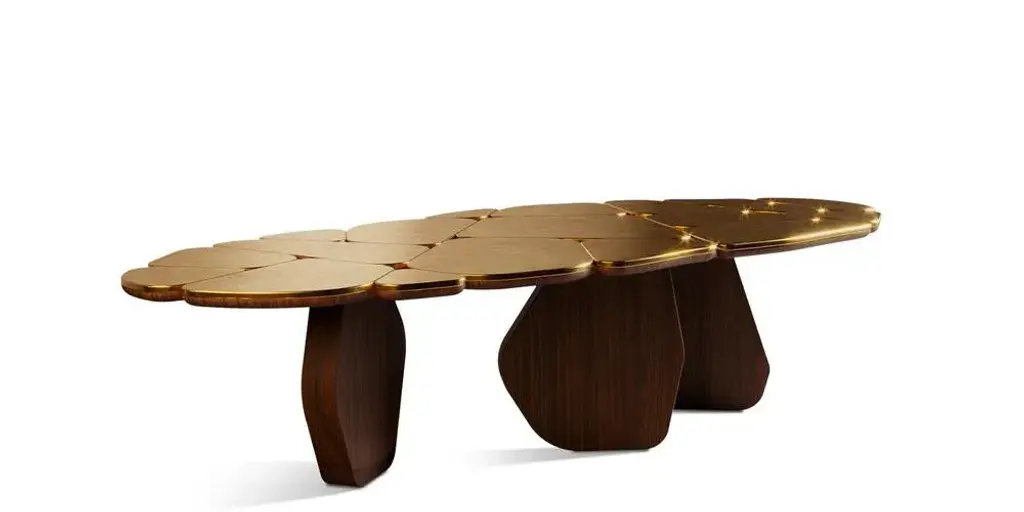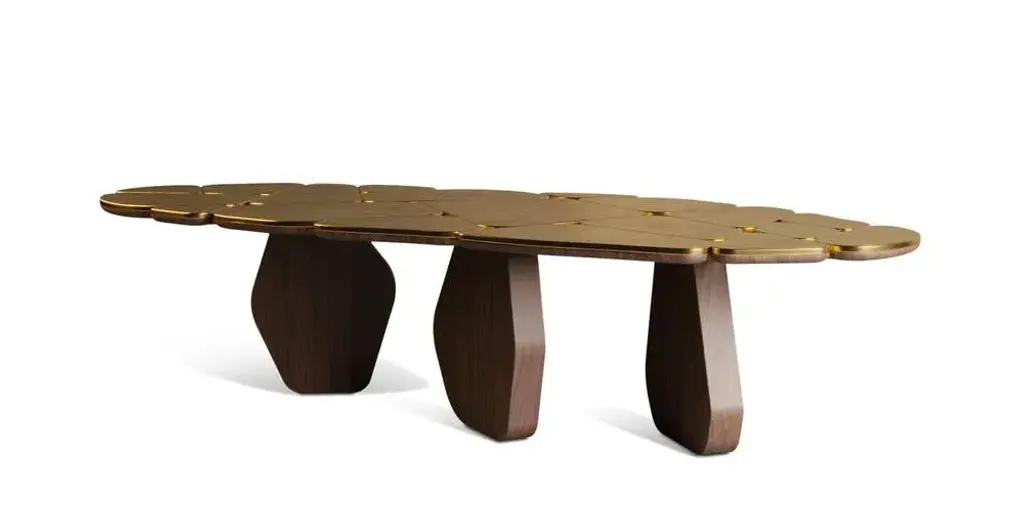 The Anta da Arca Dining Table has distinctive details that make it a delicate combination between the best-handcrafted walnut wood and the touch of gold leaf in shades. This piece was designed for moments of conviviality, sharing these legends, created in an exceptional moment of inspiration, this modern luxury dining table is the perfect central point of any dining space. Labeled by Maker