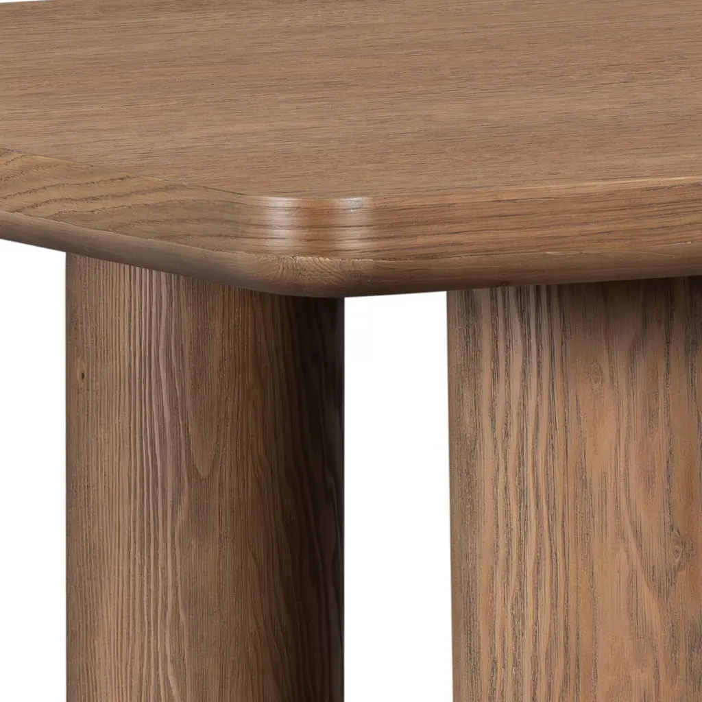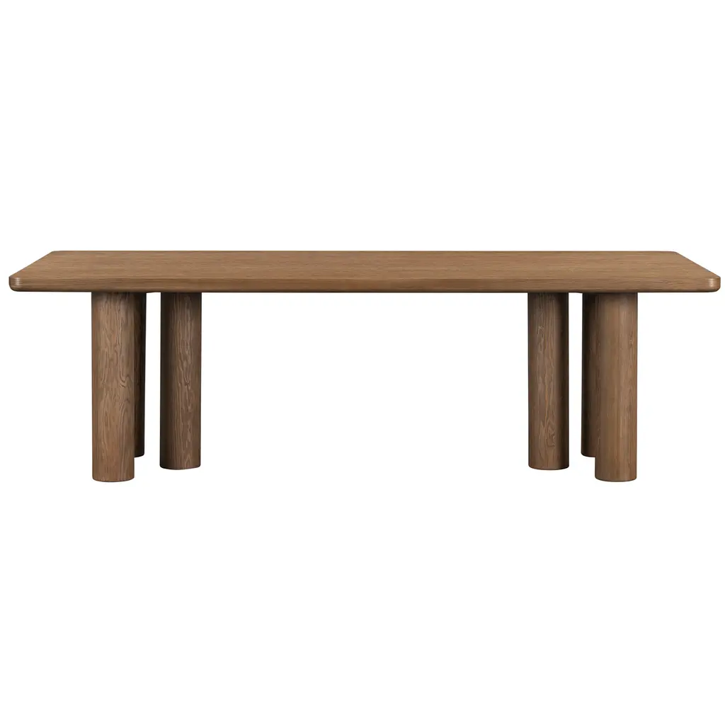 The Antibes dining table brings together bold, geometric forms in a striking design. It features a rectangular tabletop paired with columnar legs, all crafted from solid wood in a rich finish.