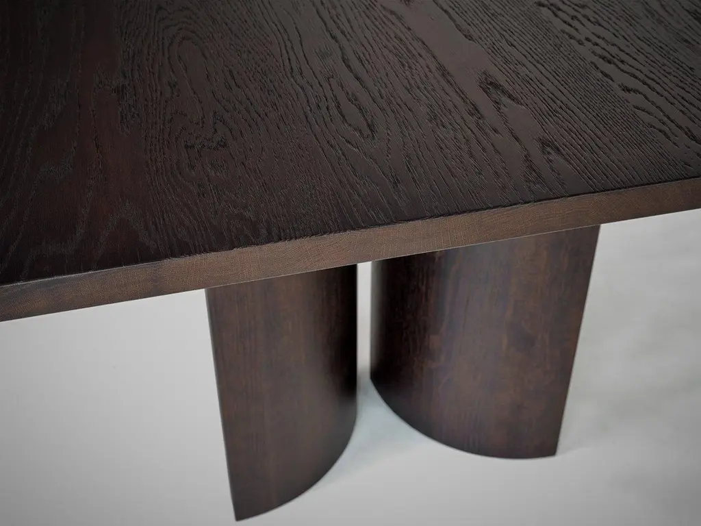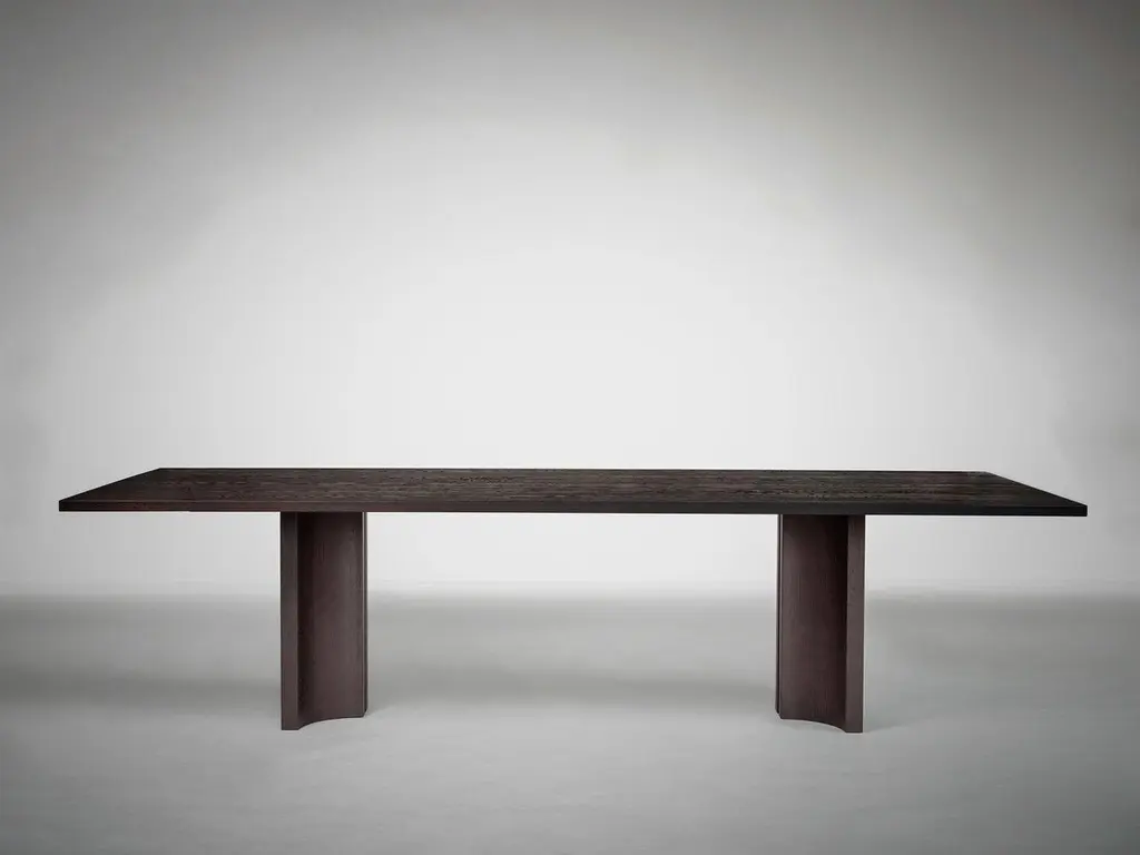 Aperta C3 280 American Walnut Rectangular Dining Table by Mokko AmsterdamDimensions: D 90 x W 280 x H 75 cm. Materials: American walnut.Available in different material options and dimensions. Designed by Aad Bos and crafted in the Netherlands. Please contact us.Aperta is inspired by the mystery and attraction of light and space breaking through narrow voids in architectural structures. The objects feature a precise slit, creating a sense of lightness to its solid form. The Aperta table has manually adaptable legs, allowing for various configurations to alter the table’s expression within the space. Designed by Aad Bos and crafted in the Netherlands out of solid European oak or American walnut. The product is made to order with a production time of 7-8 weeks and customizable in design, size, material and color.We welcome you to our studio to get a feel for the quality and presence of our objects.Mokko represents a collection of interior objects designed by founder Aad Bos. The Amsterdam-based studio was established in 2017 and creates custom products for interior professionals and design enthusiasts internationally.Objects by Mokko feature a rhythm of monolithic form, created through an iteration of volumes and voids. Architectural elements are balanced, weighed and stripped from excess, until the essence of the inspiration is translated into a sculptural object that is emotionally resonant.With respect for nature and robust furniture building, each piece is made in close collaboration with local carpenters in the Netherlands from high-quality, sustainable materials. All objects are custom-made and conceived as future heirlooms; intended to be valued, used and passed down through generations.