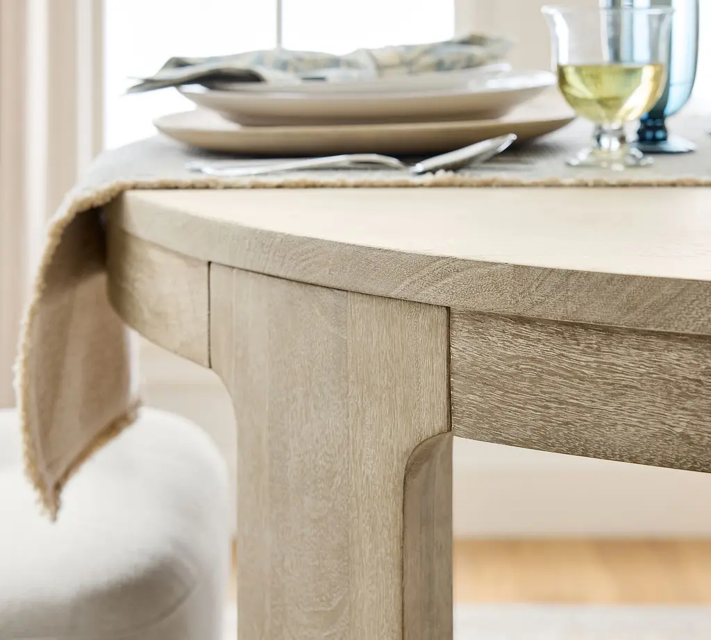 Crafted of solid wood in our exclusive Sandwash finish, this table has a beautiful, weathered look that highlights its gorgeous grain. With clean lines, firm curves, and a drop-in leaf that extends to seat up to six guests, it's perfect for everyday meals and entertaining.