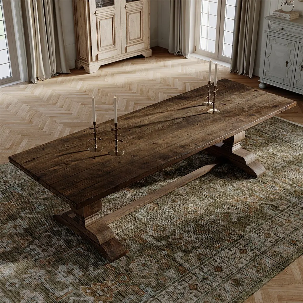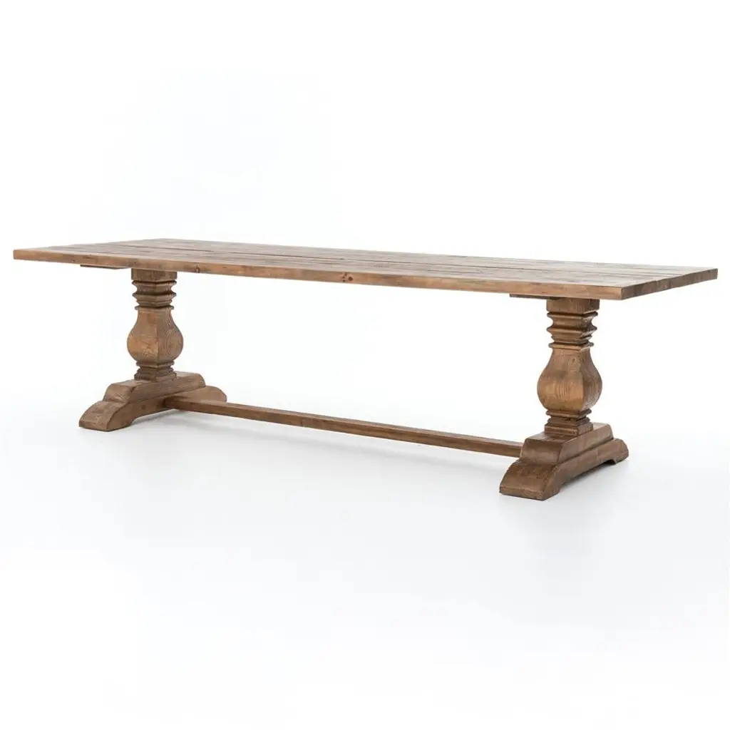 Arbois French Country Pine Wood Trestle Dining Table - 110"w
