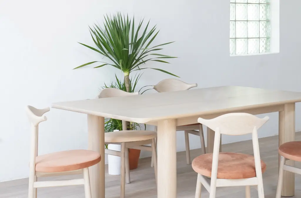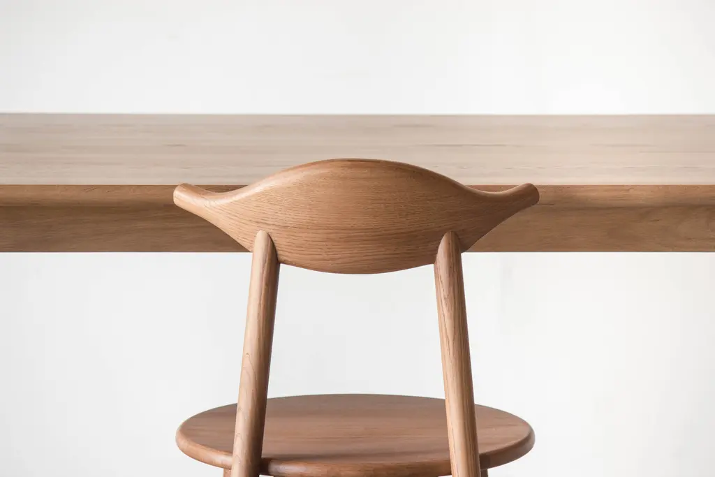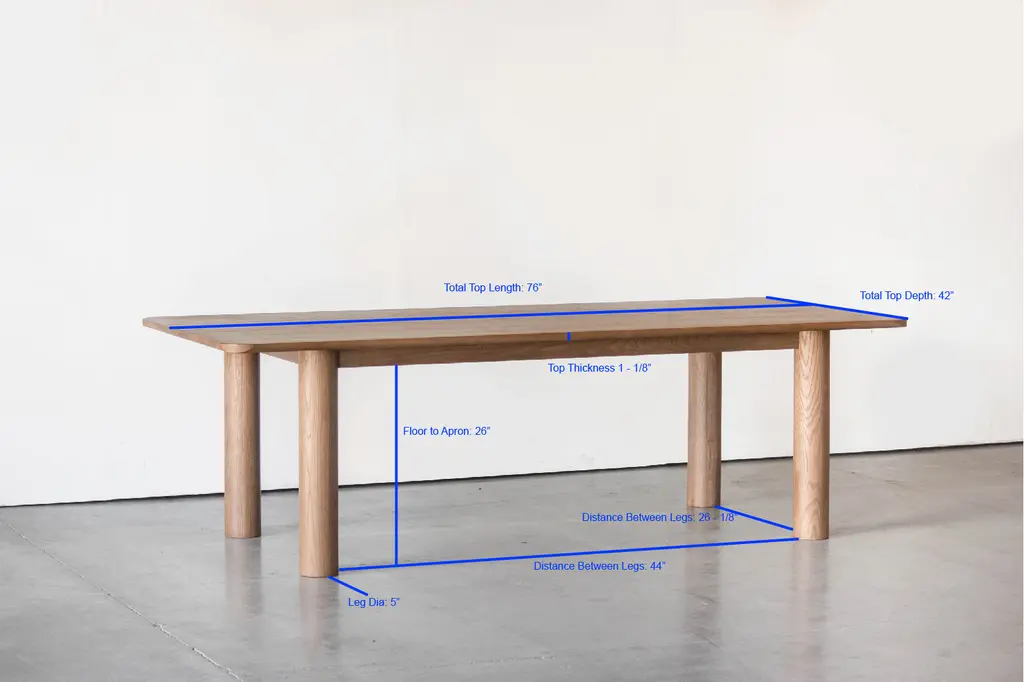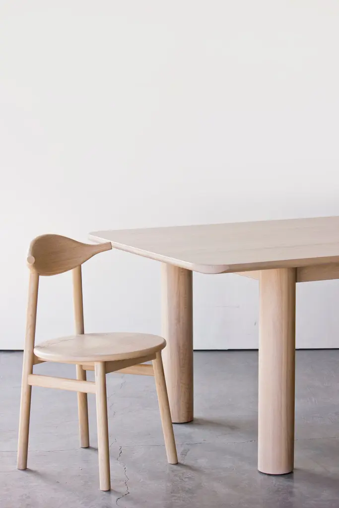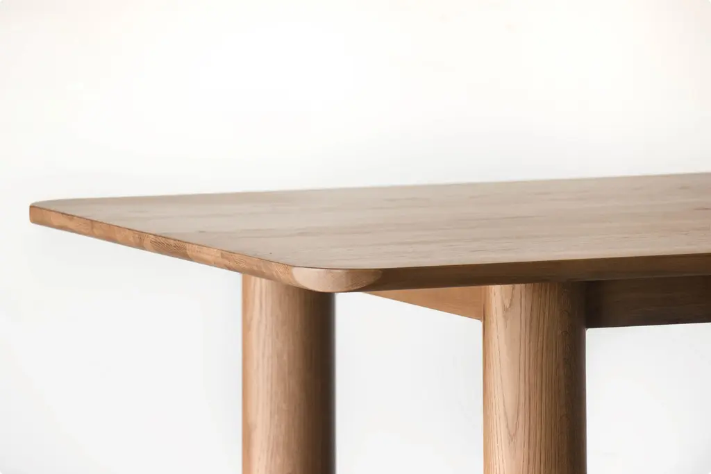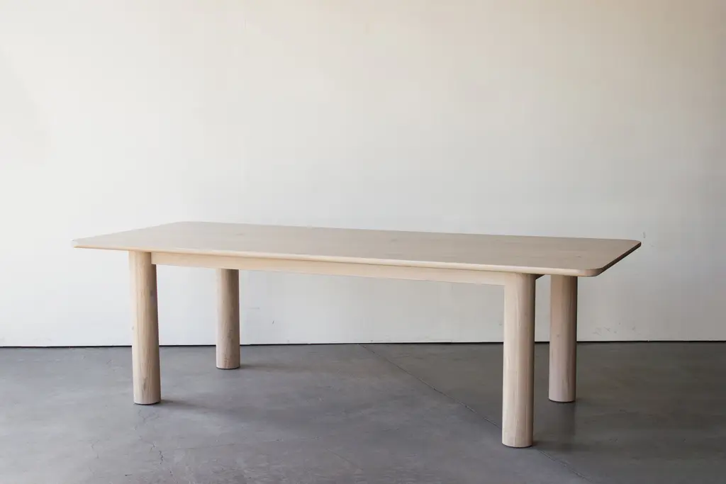 The Arc dining table is made from all solid white oak. This centerpiece is meant for life around the dining table and features beautiful corner detailing with wide cylindrical legs. Available in two sizes and finishes. Please note that we make each piece by hand, and every tree is different, so you’ll see slight variations in color and pattern. These aren’t machine made, and we use solid wood, not veneer or engineered wood!
