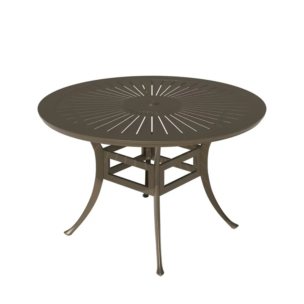 A distinctive arched design characterizes the pieces of the Archi Collection (from the Italian word for "arches") featuring a classic look that will look stunning in any setting, from elegant terraces to intimate verandas. The impeccable silhouette features a forged stainless steel base with six ribs supporting the round top connected to a ring with six curved feet. A black powder-coated finish and zinc treatment provide added durability and ensure optimal performance in all weather conditions.