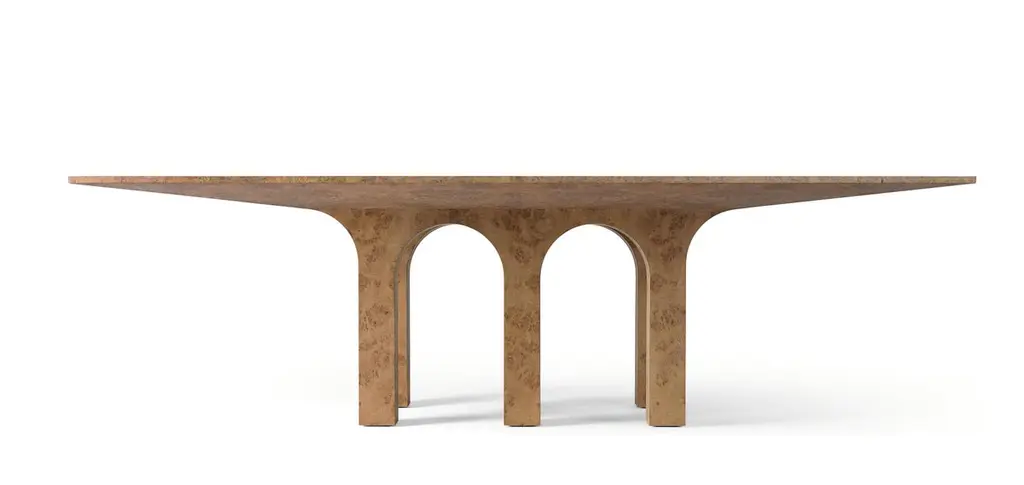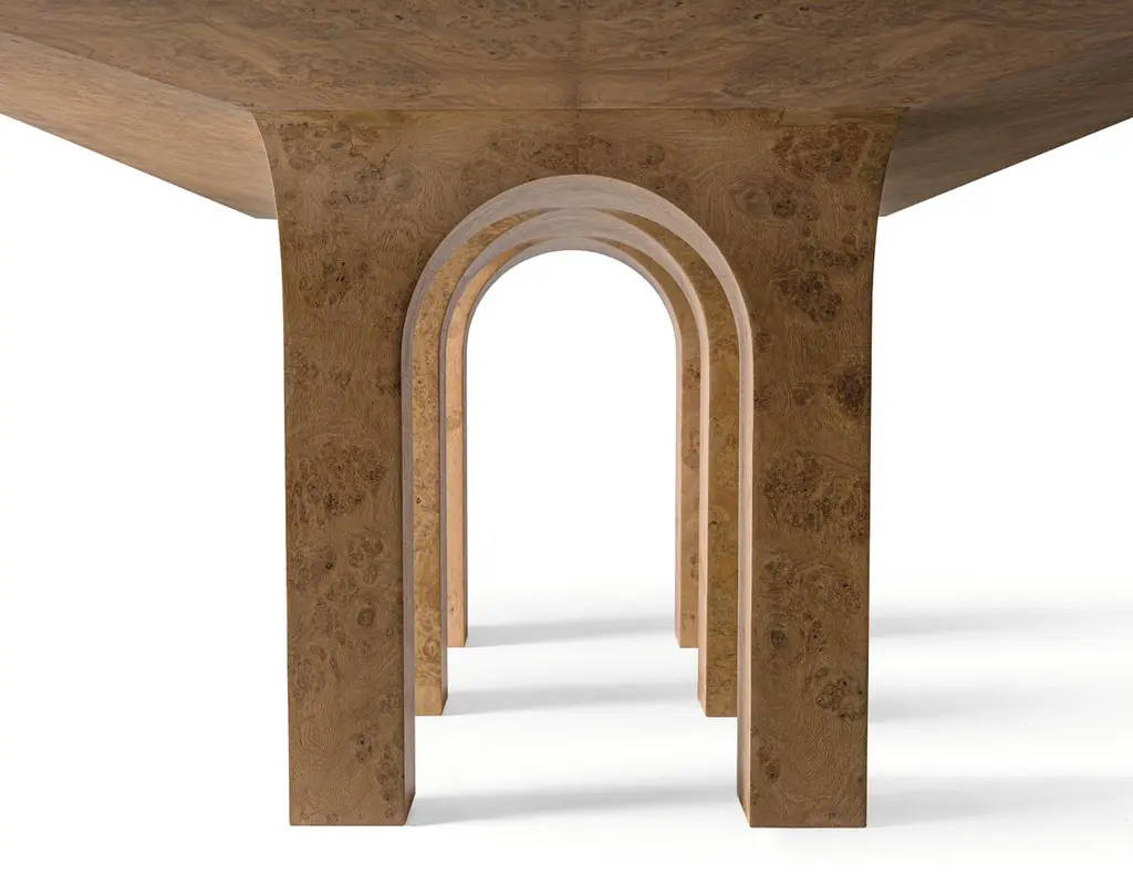 Archi Dining Table In Oak Burl And Ebony Inlays - Arch Shaped Legs
