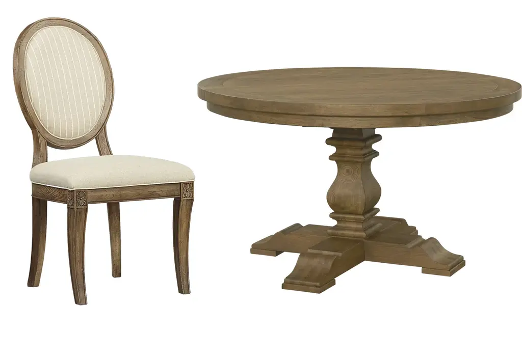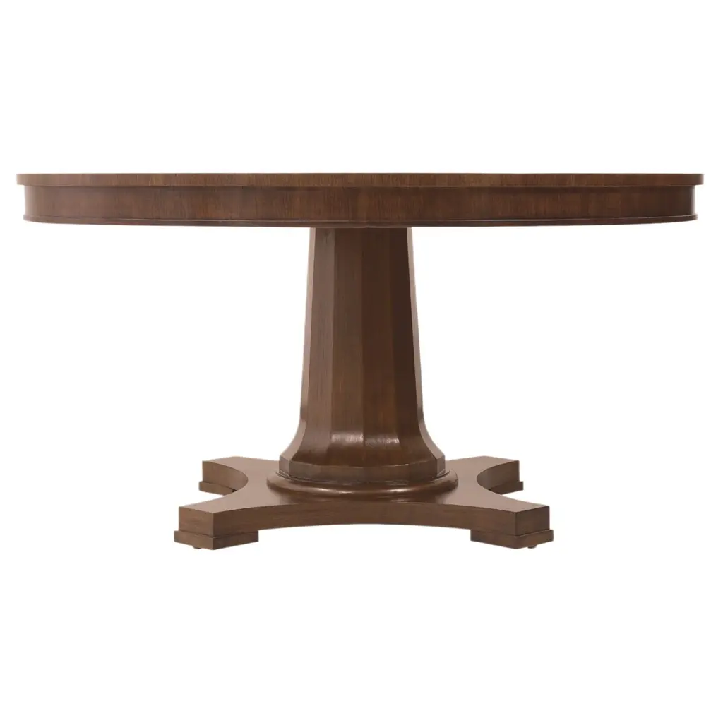Bring timeless elegance to your dining space with the Archives Round Pedestal Dining Table. Crafted with figured walnut veneer and a solid wood edge top, this table exudes luxury. The round shape and classic pedestal base make it a versatile option for intimate dining or family gatherings, offering a traditional design with modern durability.