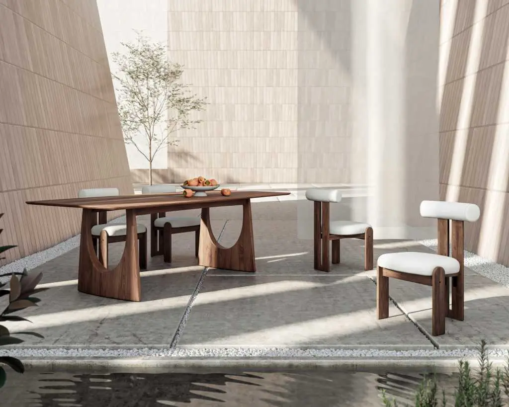 Delve into the luxuriant charm of the Arco Outdoor Dining Table. Modern yet sculptural the Arco adds a contemporary feel to any outdoor dining space with its curved legs and minimal silhouette.