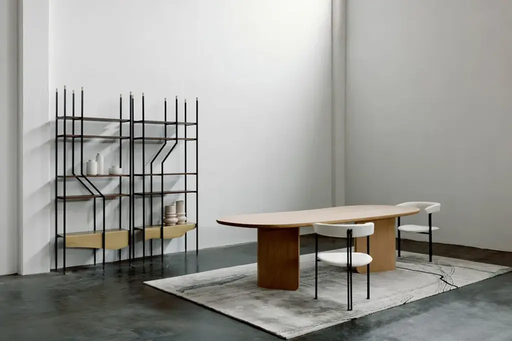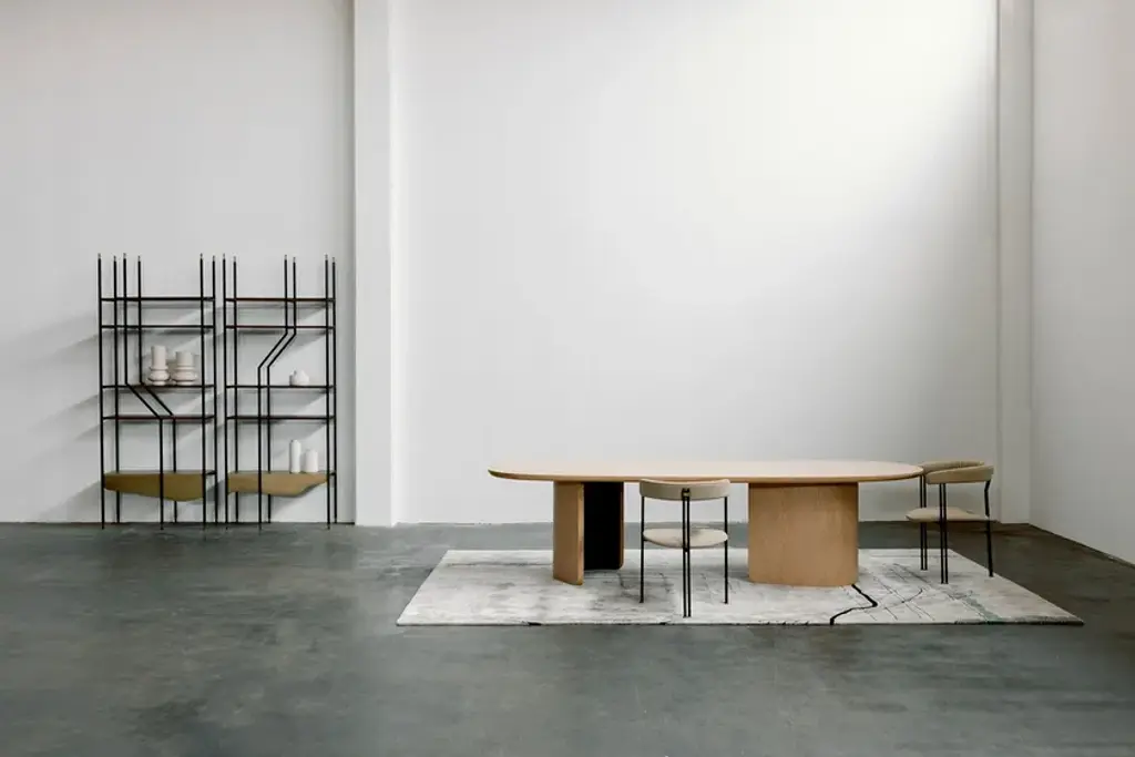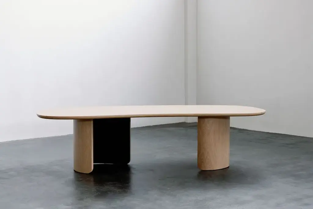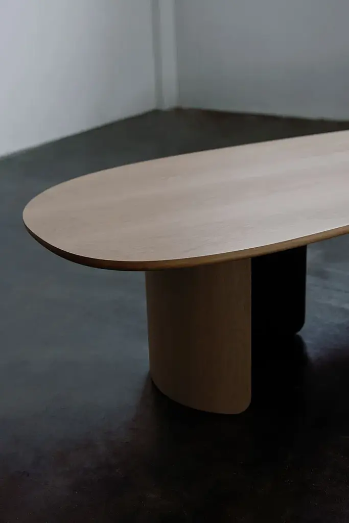 Designed by Rute Martins for the Contemporary Collection, raw beauty and exquisite design are harmoniously combined in the ARMONA dining table, as it embodies the form and warmth of Armona Island. The bean-shaped tabletop in solid American oak with natural finish creates a powerful vision. The exuberant design with a contrast veneer on the inside of the legs leaves no one indifferent.Materials & FinishesWD027 American Oak; open-pore natural colour; matt finishWD026 American oak; open-pore dark brown stained; matt finishWith high-quality materials and textures, the elegant Armona collection captures the shape and warmth of the beautiful island of Armona. Raw beauty and exquisite design combine harmoniously in the wooden coffee table with a dark oxidised brass top and Shadow Onyx, a match made in heaven. With its natural veining, the exuberant stone design carries the eyes to the top.