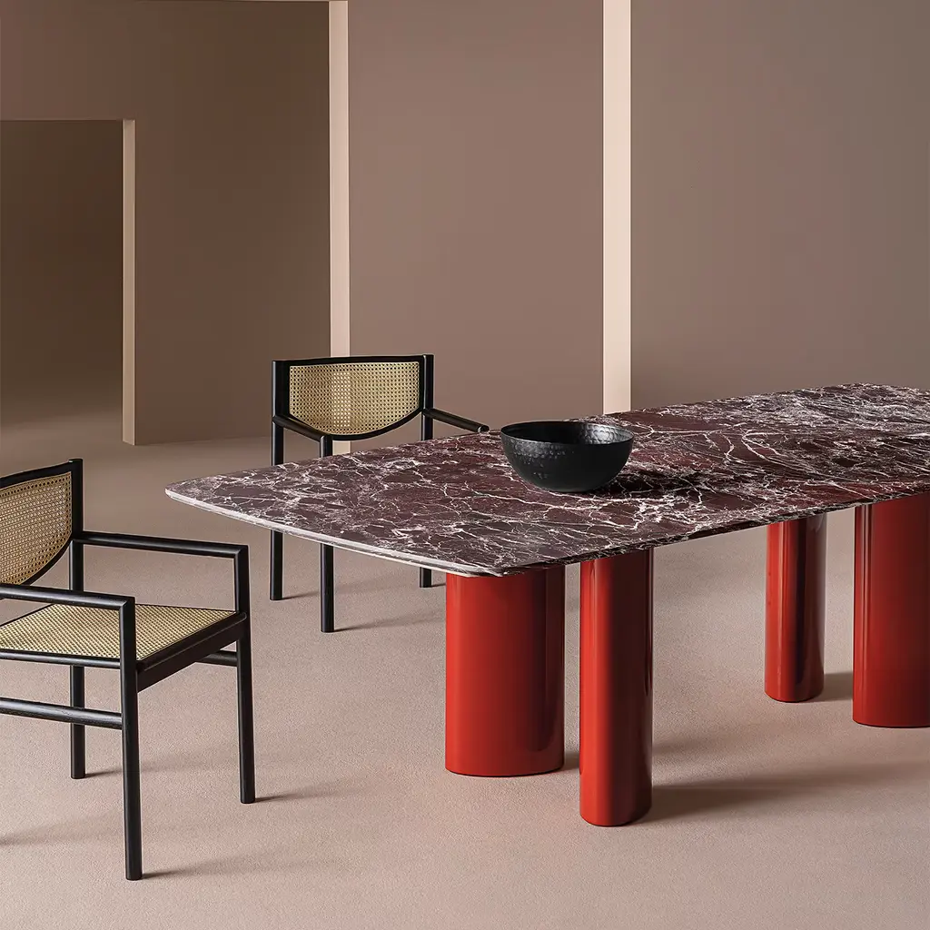 Arne Lepanto Marble And Red Legs Dining Table By Roberto Lazzeroni