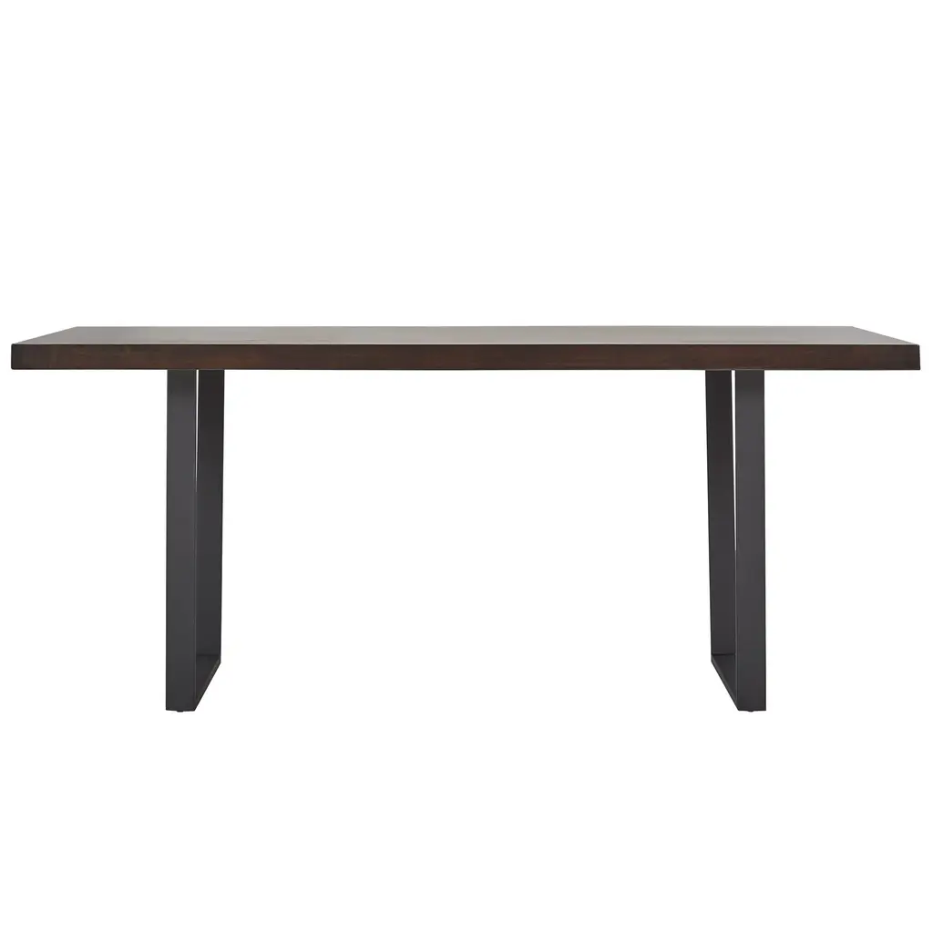 Made in Italy, the Arren Dining Table showcases classic rustic industrial style. A wood-patterned melamine table top makes this piece remarkably easy to clean. The sturdy, angled legs of this table are strikingly juxtaposed with the surface of this piece, and stand out with their black metal powder-coated finish. Place this modern table in your dining room for a clean look, or use it as a conference table in your office space and enjoy the infusion of modern, streamlined design. Made in Italy from 100% recycled eco-friendly materials, this piece was deliberately produced with minimal environmental impact.