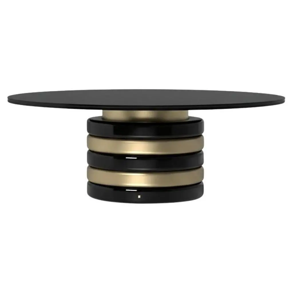 This walnut dining table strikes a harmonious balance between timeless elegance and contemporary design. The walnut tabletop highlights the natural beauty of the wood, while the sturdy base combines walnut craftsmanship with brushed gold metal accents for a touch of modern sophistication. With its refined lines and luxurious details, this table serves as a bold yet versatile centerpiece, designed to enrich any dining space with enduring style and quality.Materials:Tabletop; Walnut WoodStructure: Walnut Wood and Brushed Gold MetalPlease contact us if you have any questions about customization and pricing. We will be glad to check with the factory’s technical team if sizes, finishes, and colors can be customized. We do our best to expedite production and to ship and deliver product within the listed lead time, however current lead times might be longer due to global shipping backlog and delays. These delays are out of our control and cannot be a reason to cancel an order.
