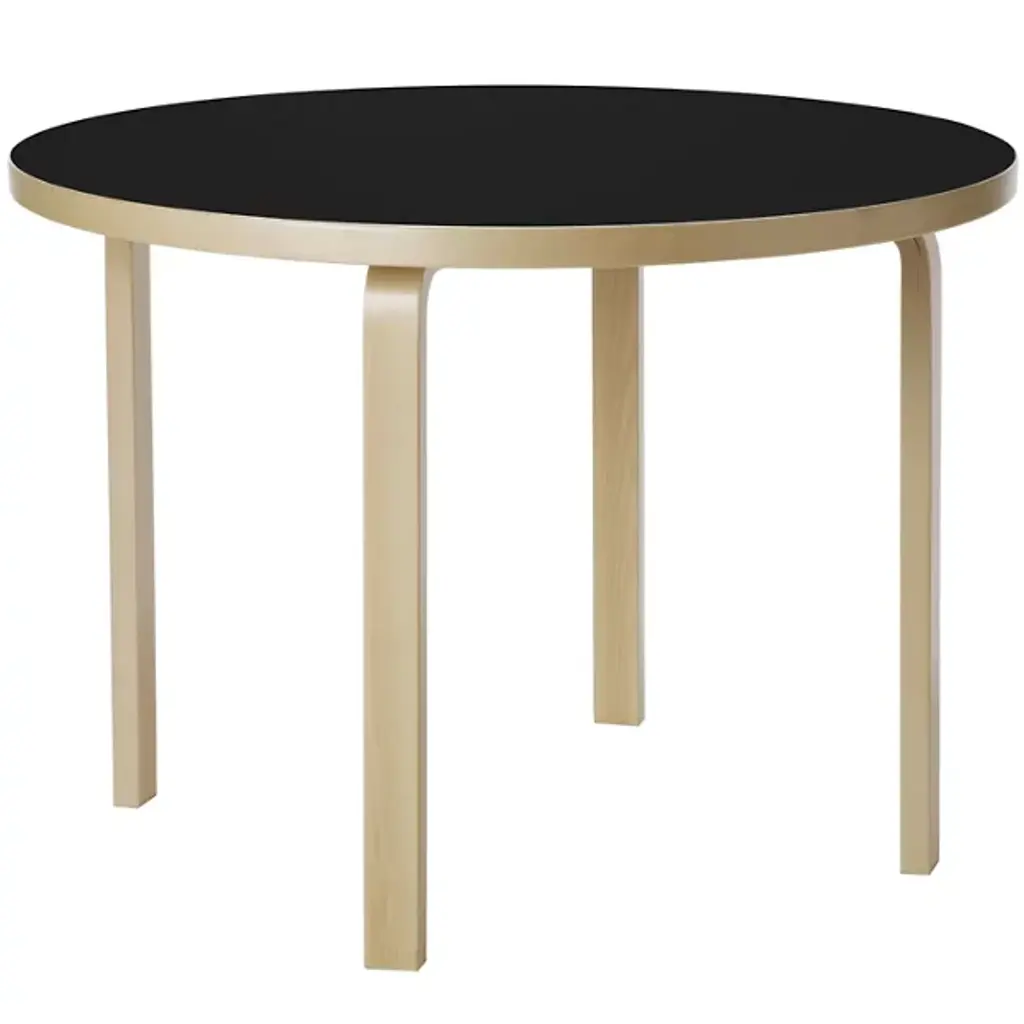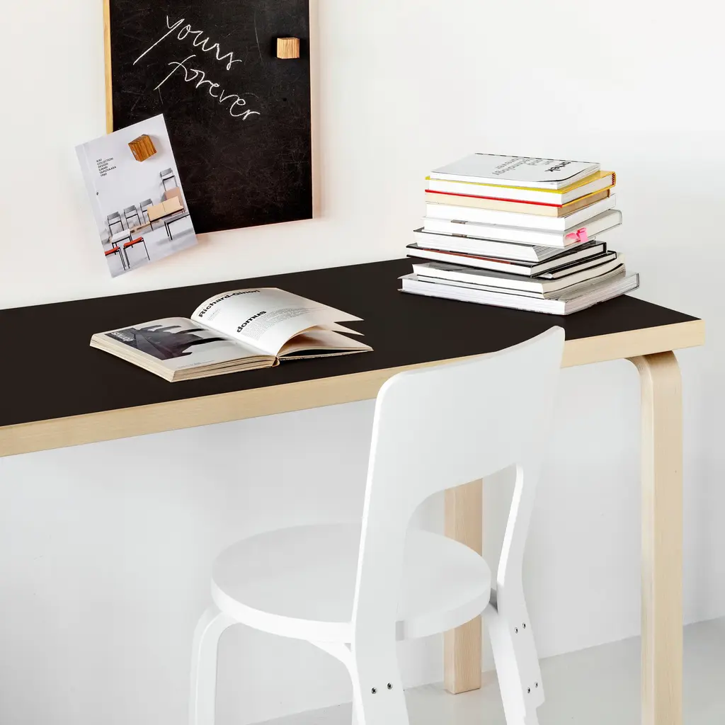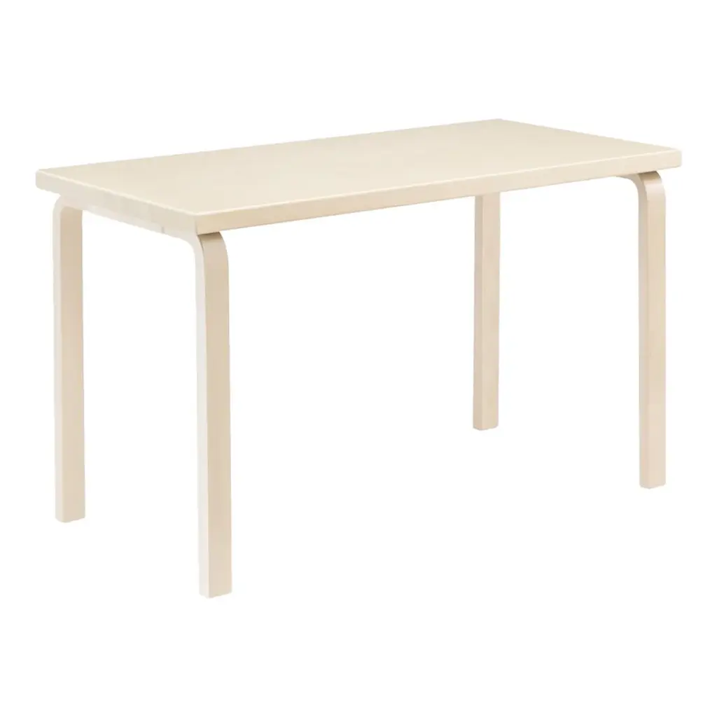 An Alvar Aalto design from 1935, the Rectangular Table 80A is a versatile piece of furniture made from Finnish birch wood that has a warm, natural beauty and will age gracefully over time. Like all Aalto designs made by Artek, Table 80A is produced semi-industrially, adhering to strict criteria and a high level of handcraftsmanship. Measuring 29.25h x 47.25w x 23.5”d, the 80A can be used as a dining table that seats up to six people. Because of its narrow shape, it’s also ideal as a desk or as a place to display books, objets and plants. The Aalto Rectangular Table 80A is made in Finland from solid birch, chipboard, and honeycomb core. The birch frame is lacquered. Table top surface finishes offered include a lacquered birch, white laminate and black linoleum. Some assembly required. Both Alvar Aalto and Artek is represented in MoMA’s collection.