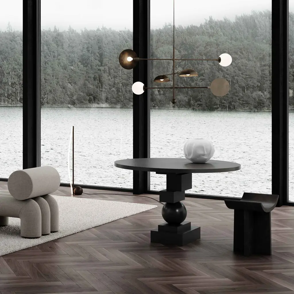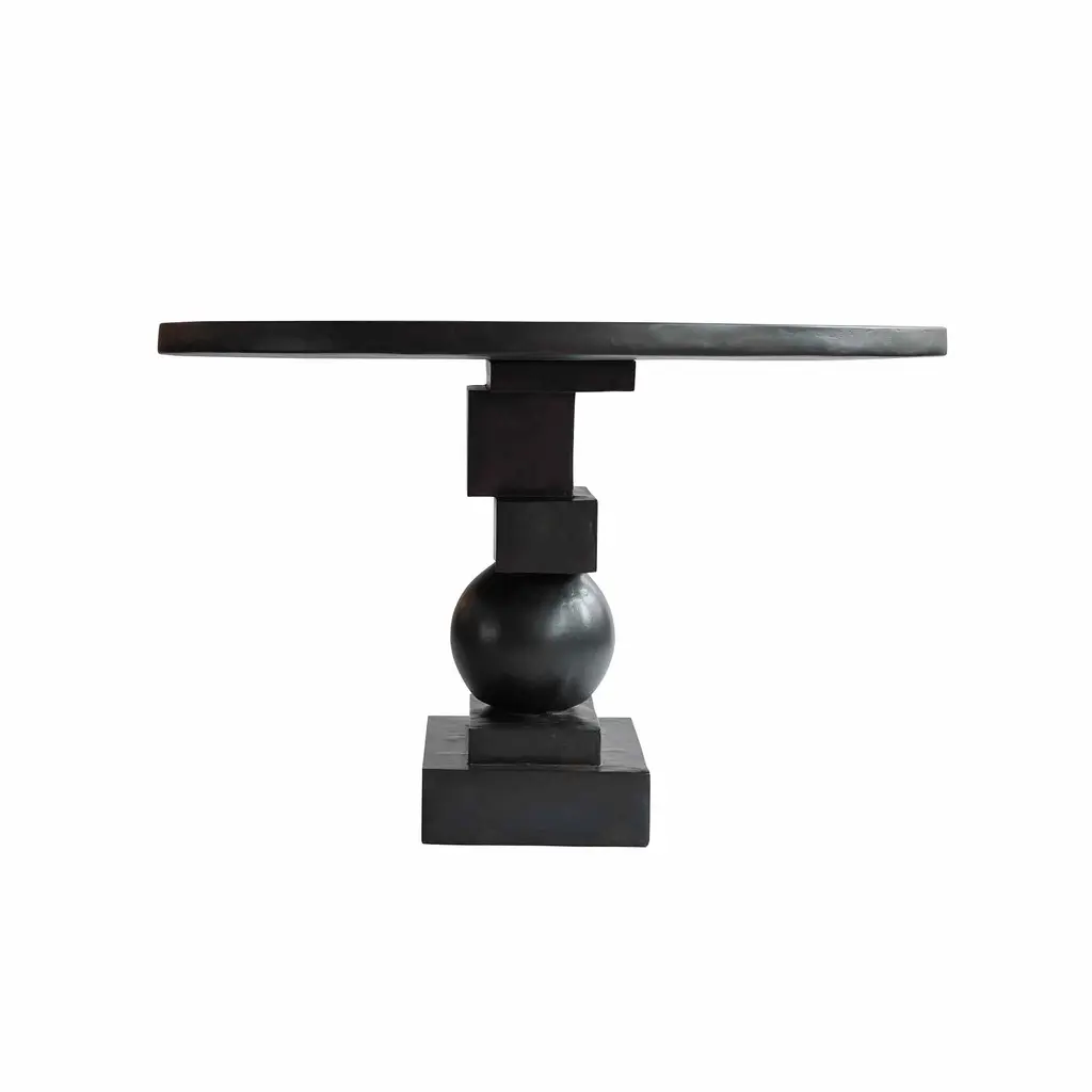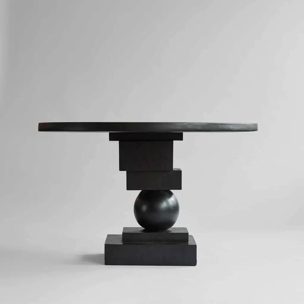 The Artist sculptural dining table is a masterpiece of geometric design, transforming any dining area with its striking presence. Crafted from cast fiber concrete, it sports a stone-like surface adorned with subtle holes and color variations, showcasing a raw and tactile aesthetic. Its sturdy build channels a brutalist style, particularly when paired with Brutus Dining Chairs, reinforcing an architectural vibe. Practical for everyday use, this sculptural dining table combines durability with visual impact, making it ideal for various dining scenarios. Each table is individually hand-painted, ensuring no two pieces are identical and enhancing its unique character. The table’s versatile size and design seamlessly fit into different interior styles, from modern to traditional, making it a commanding yet harmonious focal point in any room. This blend of artistic expression and functionality makes the Artist Sculptural Dining Table a standout choice for those seeking a durable, aesthetically pleasing dining option.