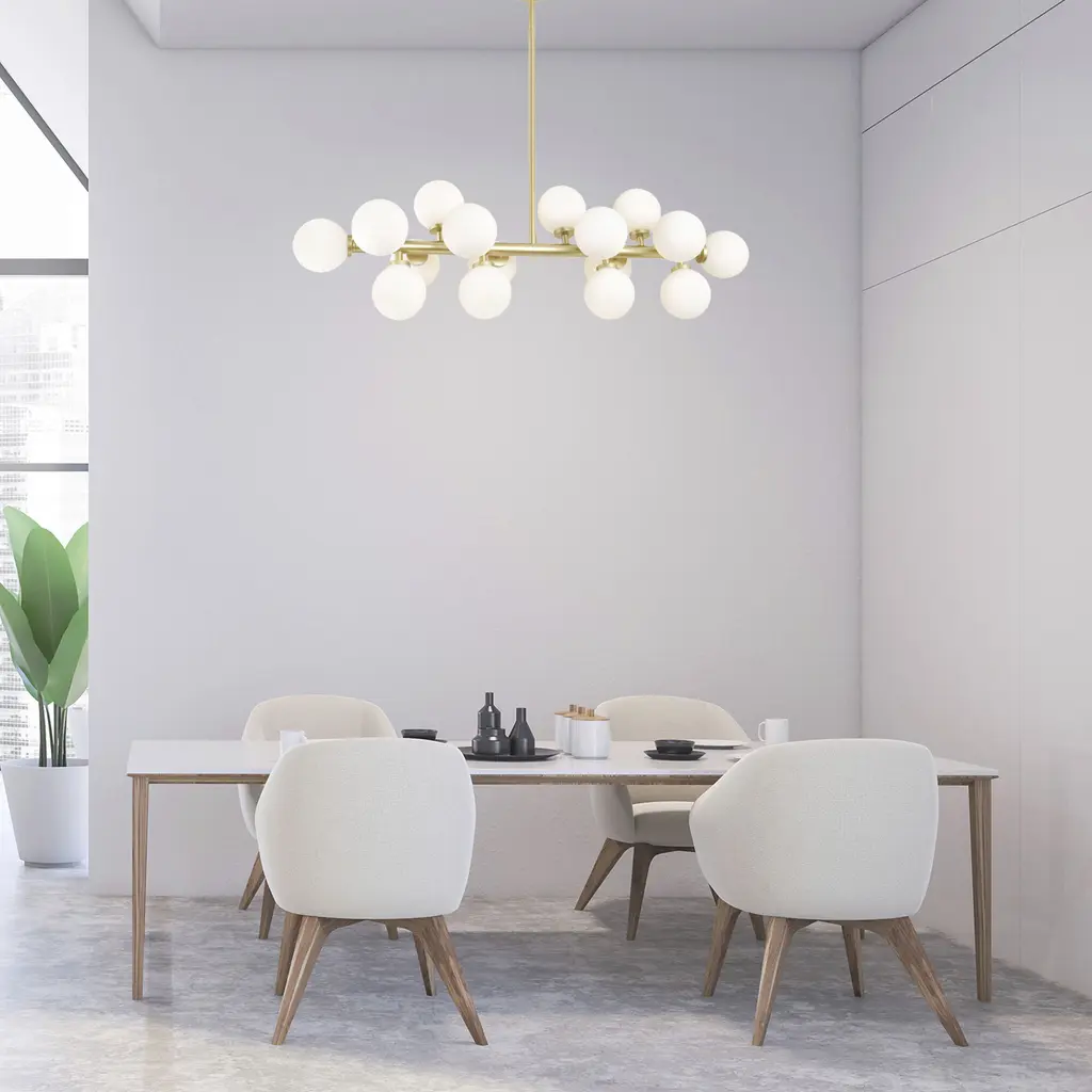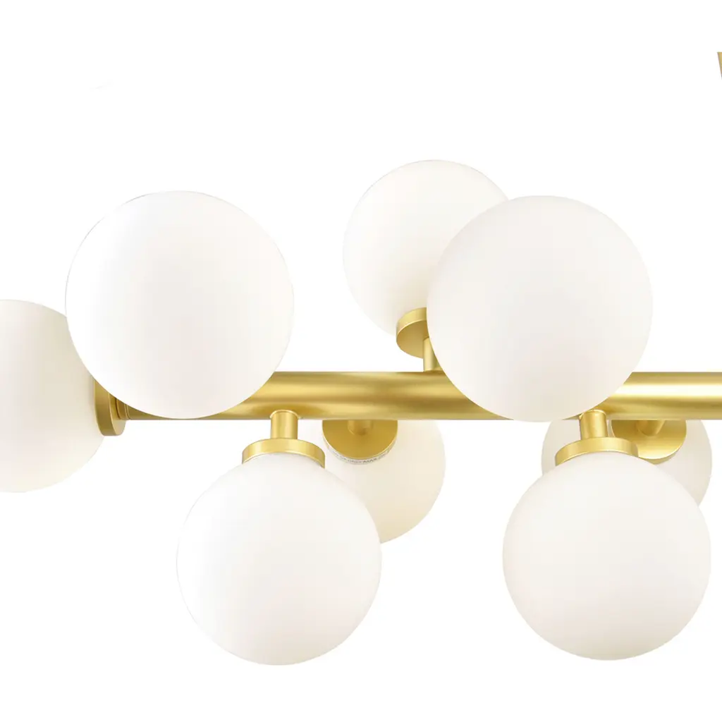 Elevate Everyday Moments with Linear Light The Arya 16-Light Linear Chandelier transforms functional lighting into a statement of refined taste. Its satin gold rod and frosted glass globes deliver balanced illumination while adding understated luxury to your home. Why It Belongs in Your Space: Task-Friendly Brilliance Frosted glass eliminates harsh glare, ideal for meal prep, homework, or game nights. Flexible Installation Adjust the downrod to center light over tables or islands (8-12 ceilings). Enduring Materials Satin gold maintains its luster, while frosted glass ensures timeless appeal. Perfect For: Kitchens where families gather, dining rooms that host memories, or home offices demanding both style and focus. A singular investment piece for discerning homeowners.