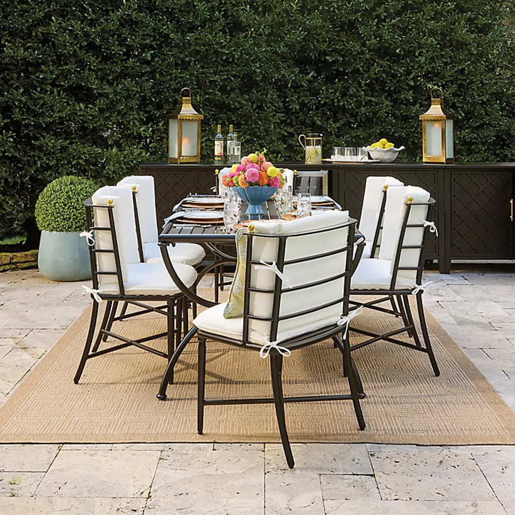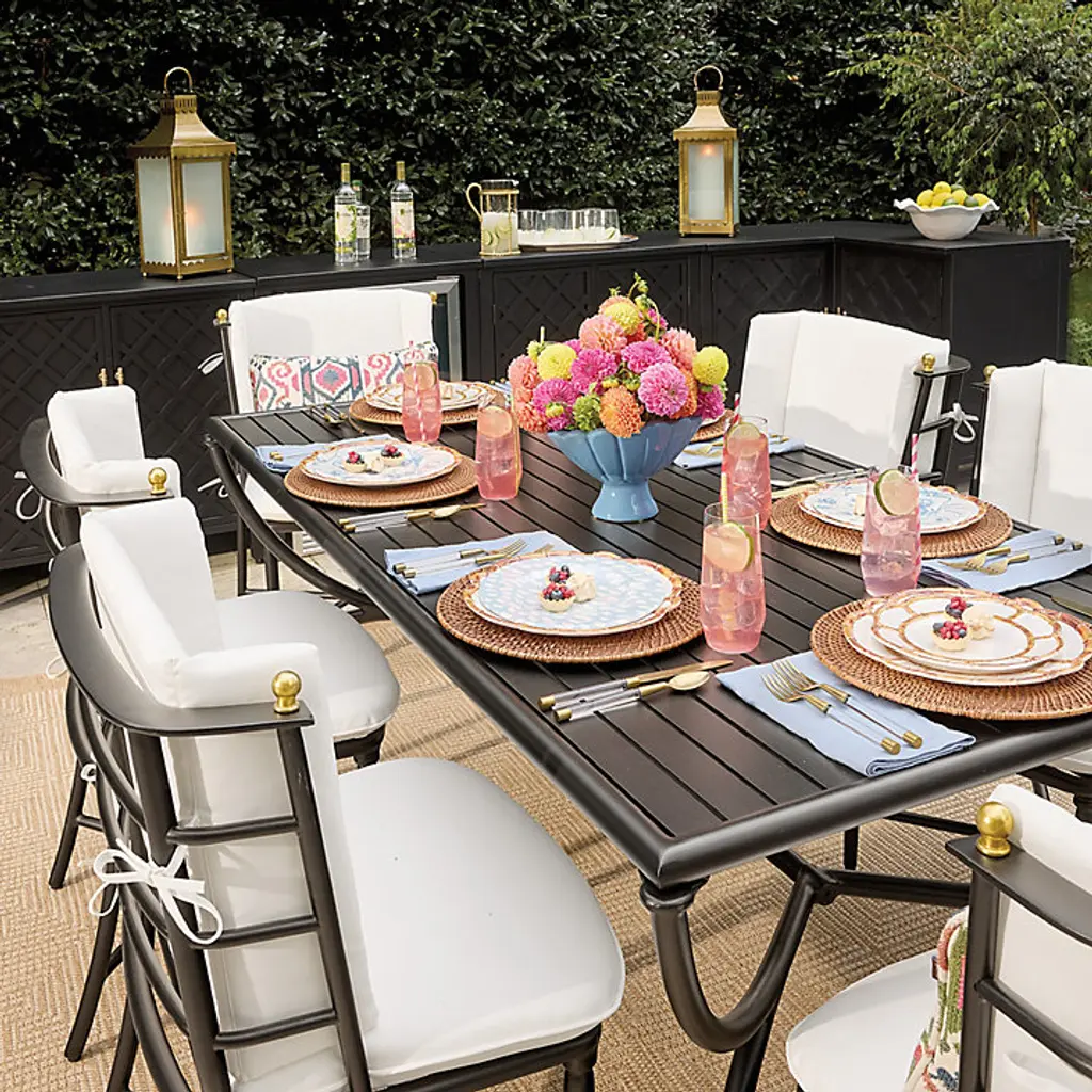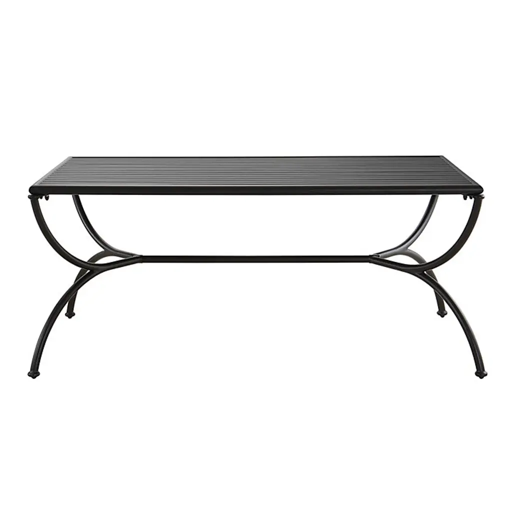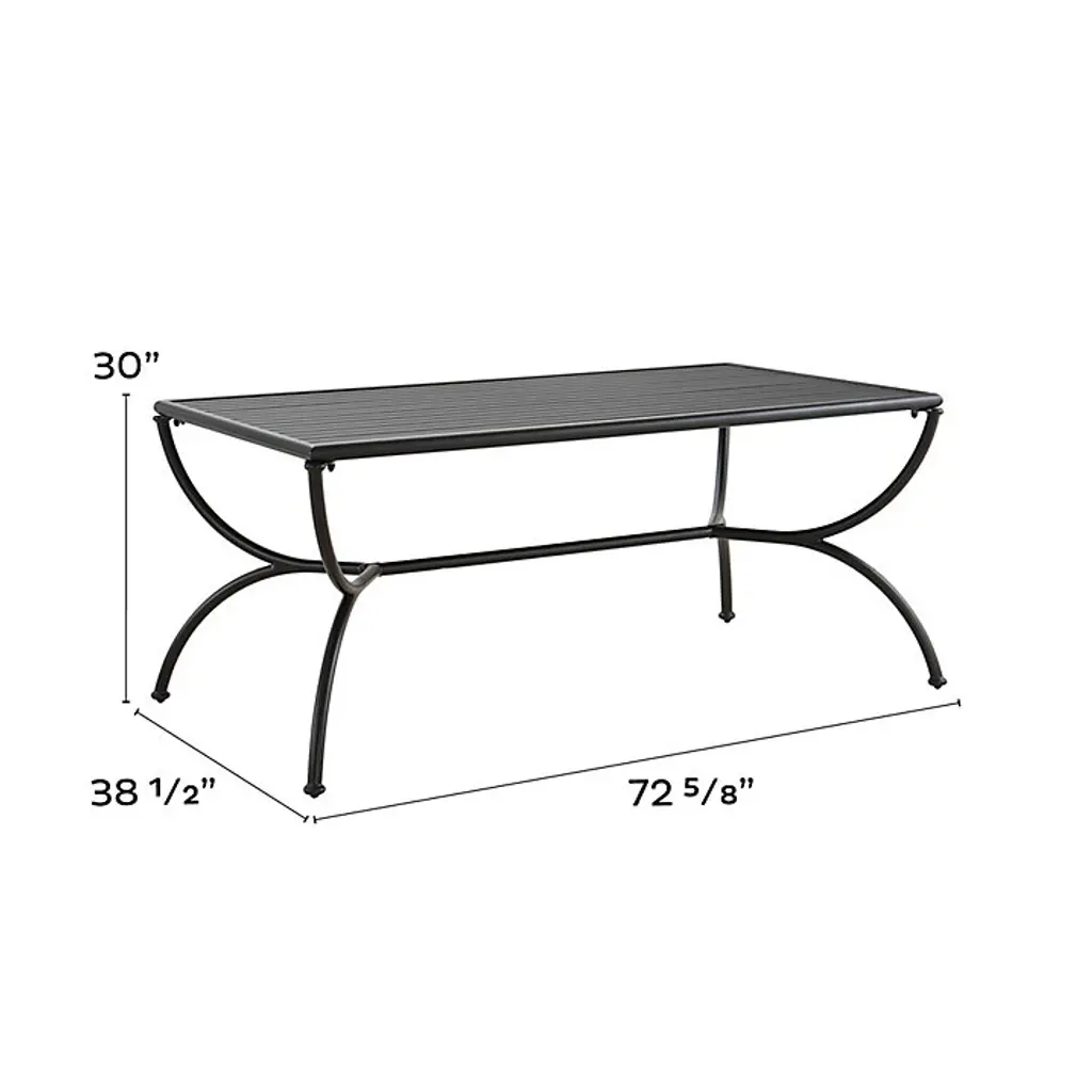 Our sophisticated Asher outdoor furniture collection translates the best of neoclassical design with elegant simplicity. Frames are masterfully crafted of matte black, weatherproof aluminum to be extremely strong, yet light enough to place easily. The 72-Inch Rectangular Dining Table is elevated on a graceful hour-glass base and features a generous slotted top that allows water and cooling breezes to flow through. Asher 72-Inch Rectangular Dining Table features: