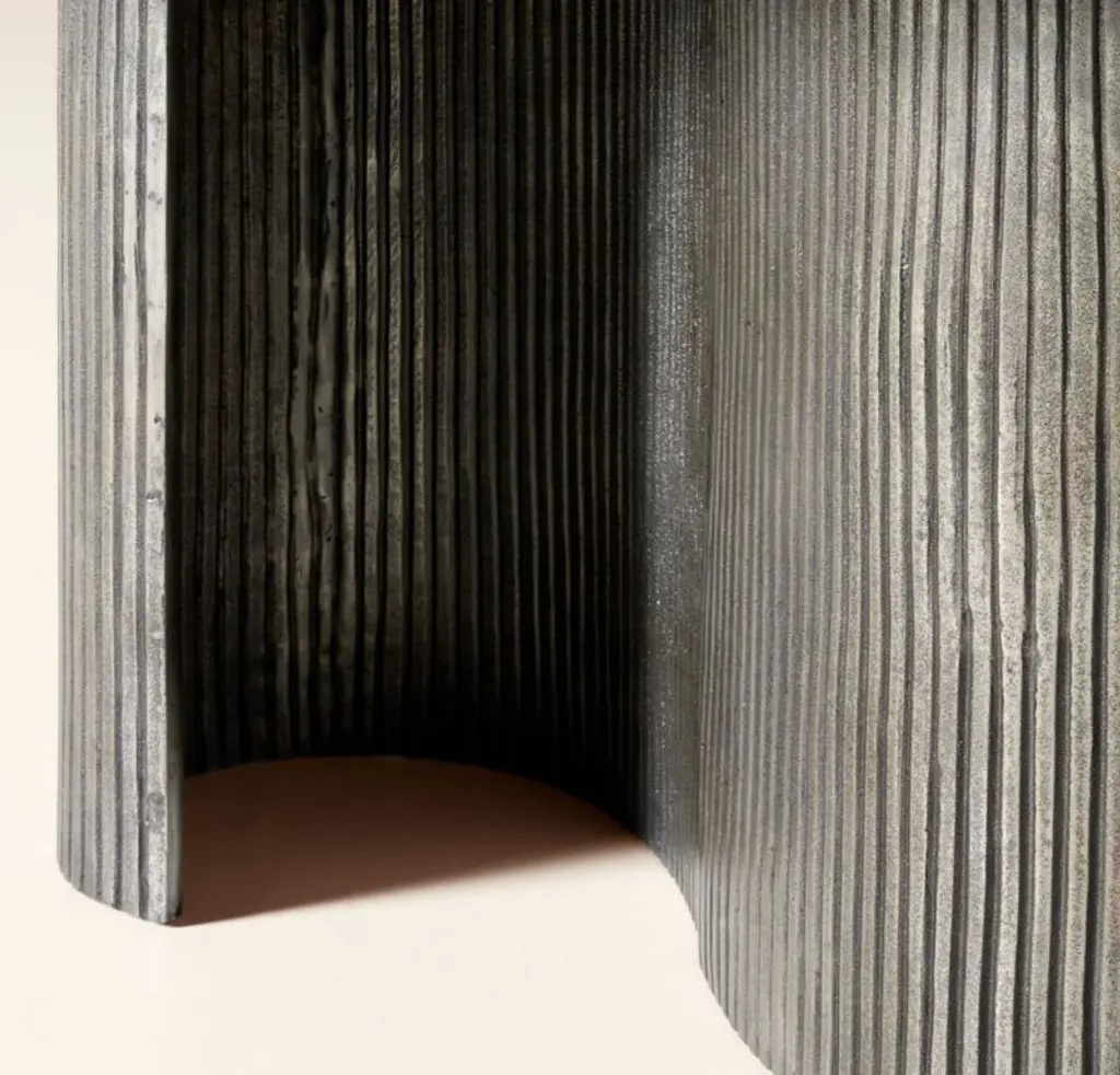 Solid fantasy marble makes a statement in this Brett Beldock design. S-shaped cast aluminum base anchors the oval slab of marble on top, while antiqued finish on the base adds a unique "found" look to the piece. CB2 exclusive.