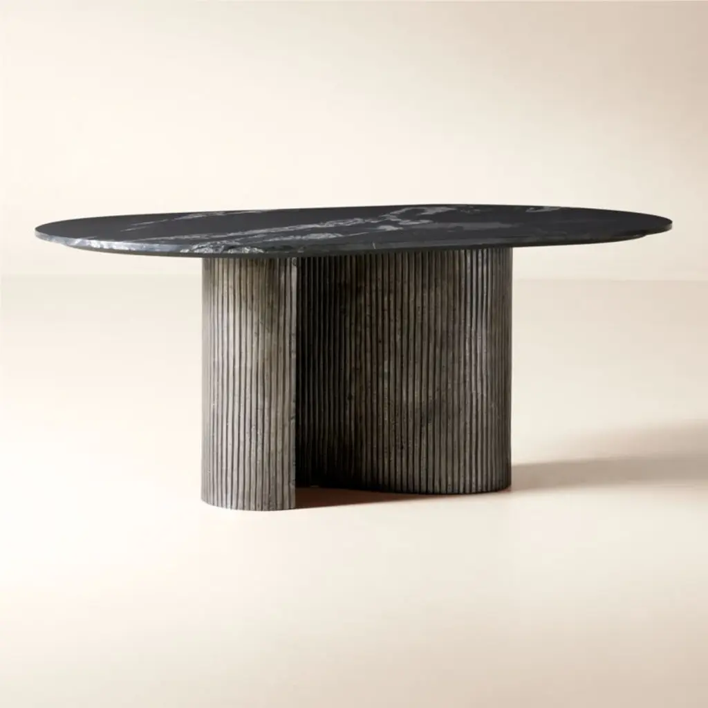 Aster 72" Oval Black Marble And Aluminum Dining Table