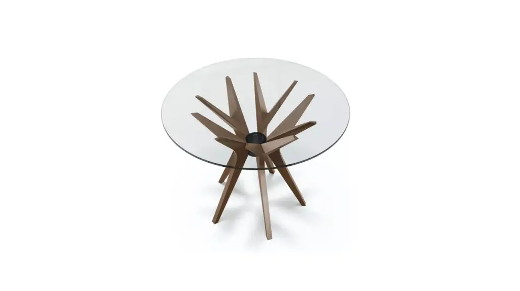 The multiple solid ash Y-shaped pieces allow you to adapt the base to support any size top. This graphic and mathematical table was designed by French-Algerian designer Reda Amalou.