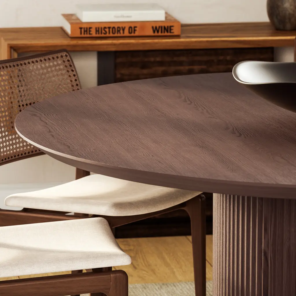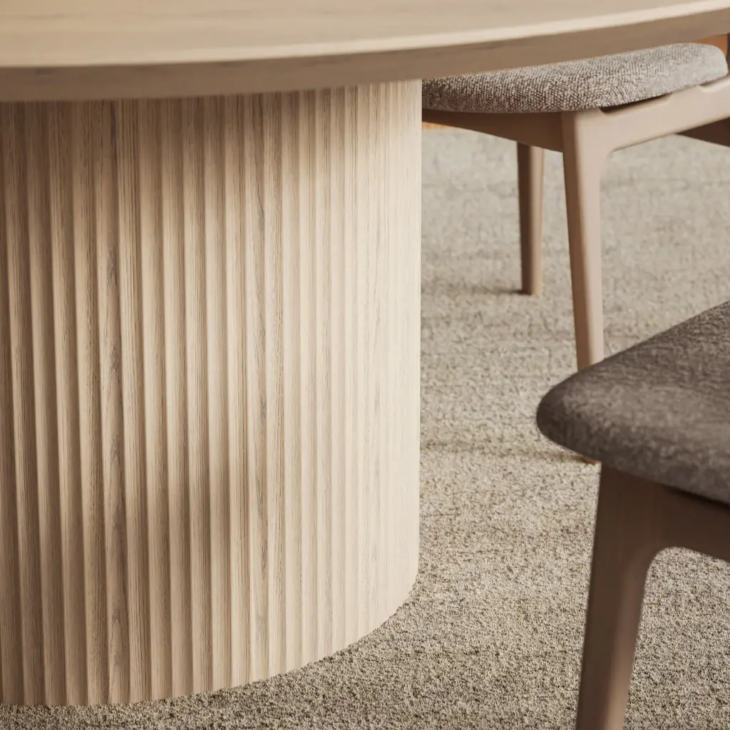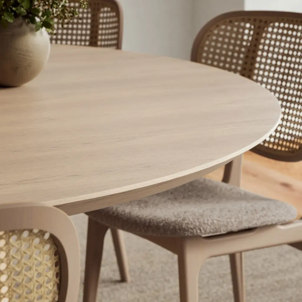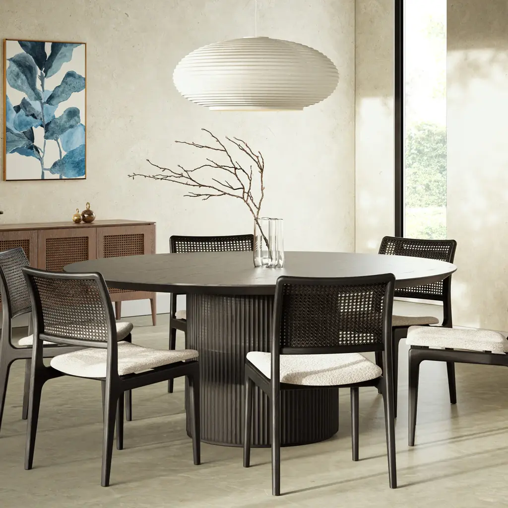 Elevate your dining experience with the Atenas Round Dining Table from Urbia. Crafted with meticulous detail, this table features a solid Tauari wood pedestal base and veneer top for a sophisticated and refined look. Its graceful form and contemporary design make it a captivating centerpiece for any dining space, while it's round form ensures a welcoming dining destination for friends and family alike. Highlights