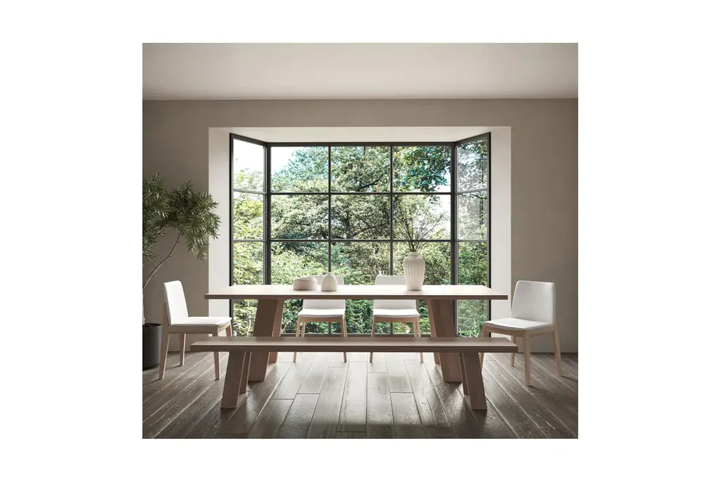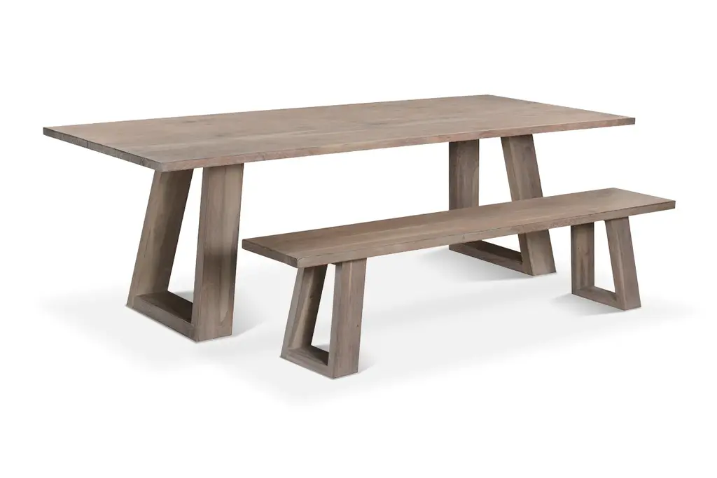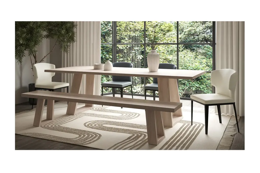 Embrace a soft, minimalist look for your dining room with the Scandinavian-inspired design of the Atlantis Dining Table. Constructed from solid acacia wood, it has a grounded, natural feel, accentuated by the shape of its open, airy base. Its soft, whitewashed finish allows the natural charm of the woodgrain to shine. The large rectangular top seats up to eight comfortably and is a perfect choice for more compact spaces.