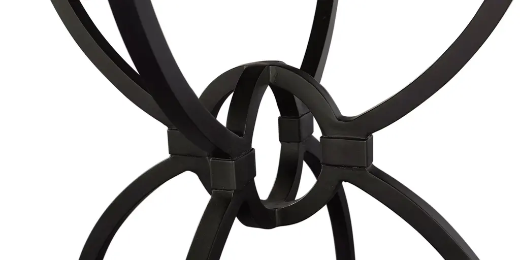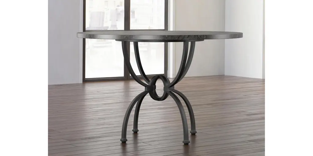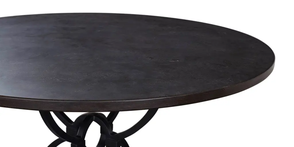 The Atlas Blue Stone Table features dramatic curves and is crafted of forged metal in an antiqued bronze finish. This open and airy base provides style and stability with its blue stone top. Gather around this table for an interesting mix of materials in your space.