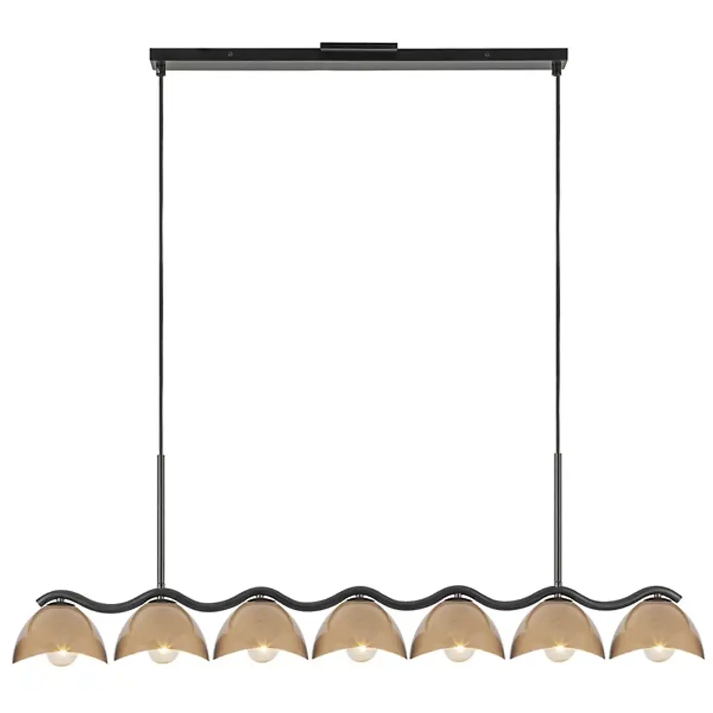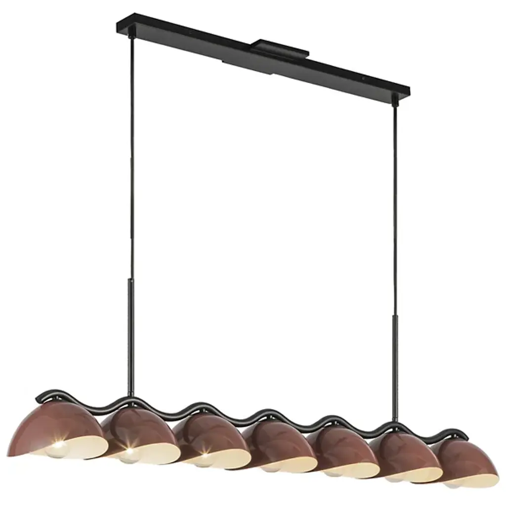 The Atlas Linear Suspension from Kuzco Lighting bends traditional linear concepts with curved forms that draw the eye along its full length. Ryan Pauly crafted this wire-hung fixture to direct light downward onto dining tables and kitchen islands, highlighting food and conversation areas. Seven bulb sockets spaced along the steel frame provide even illumination without shadows. This pendant adapts to sloped ceilings without losing its dynamic presence. Unlike standard island lights that merely illuminate, this piece introduces personality to overhead spaces. Its fluid metal framework brings unexpected motion to spaces often dominated by static furniture.